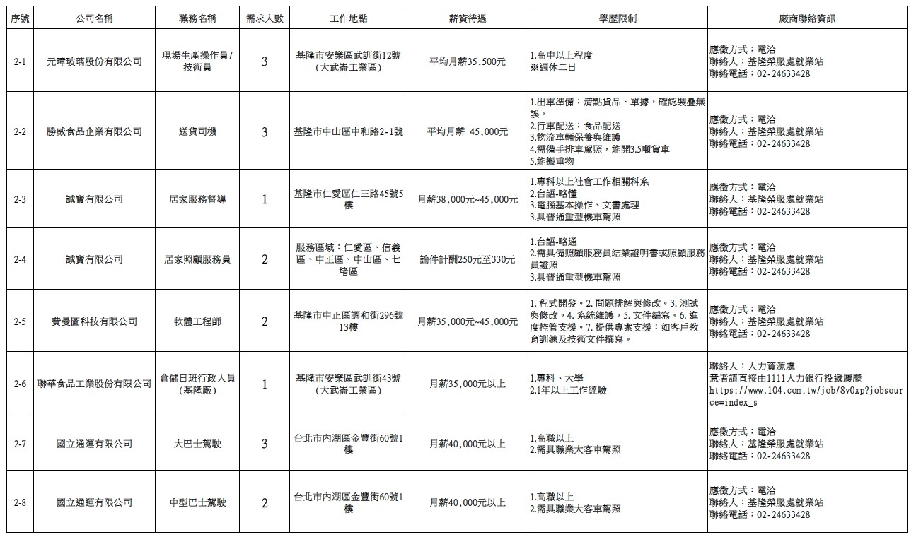 【基隆市榮服處】廠商職缺表(115.01.27)-3