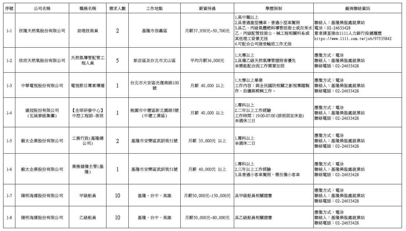 【基隆市榮服處】廠商職缺表(115.01.27)-1