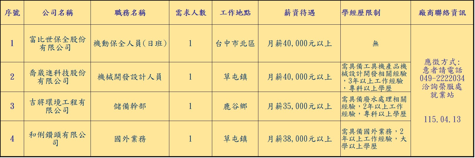 就業站諮詢電話: 049-2222034分機48張小姐、分機49蔡小姐。