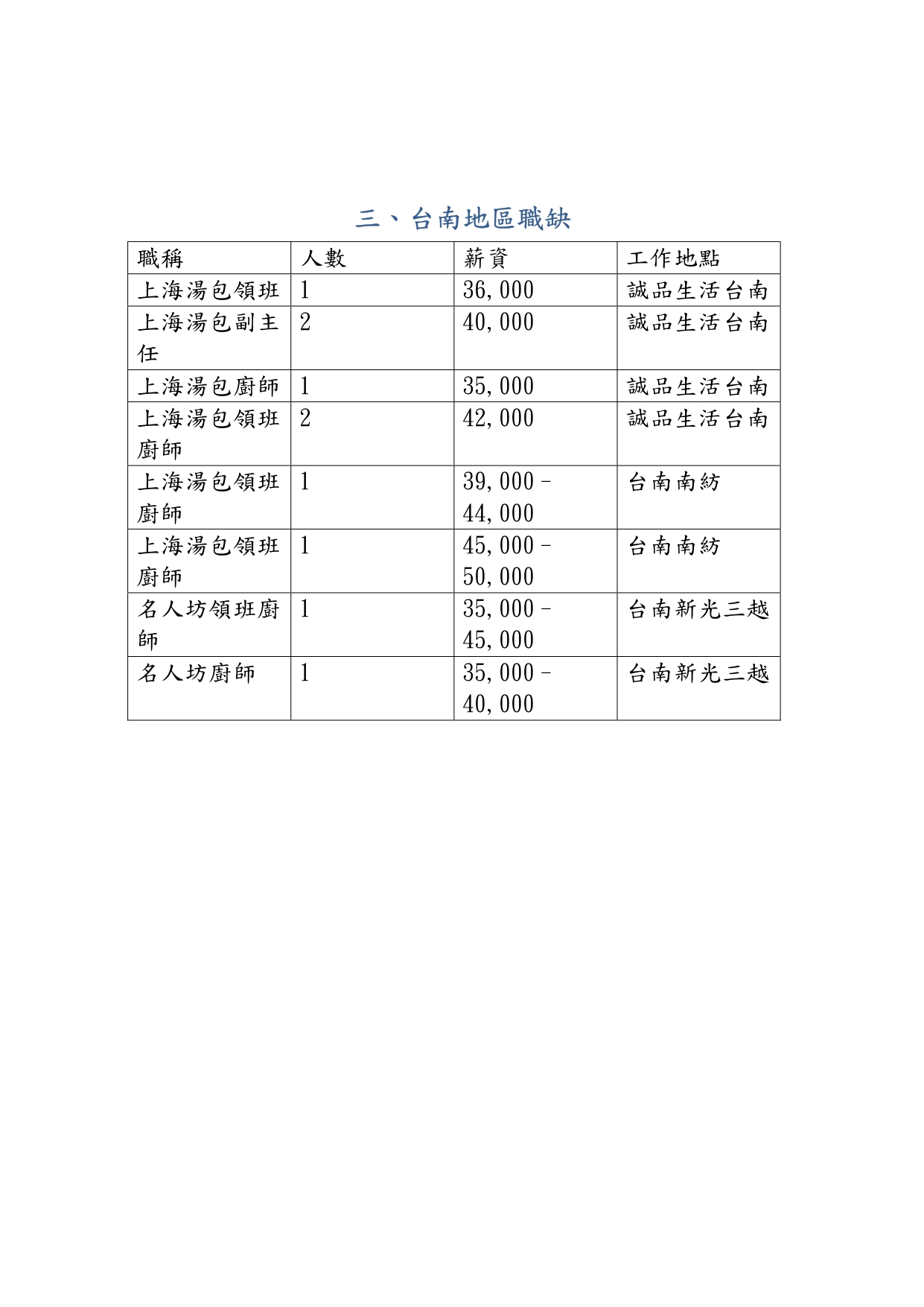 漢來美食股份有限公司職缺表-3