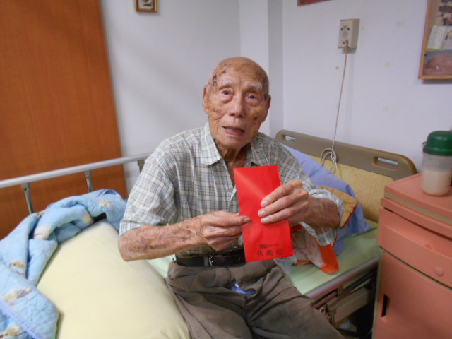 養護堂堂堂長轉贈百歲人瑞毋伯伯關慰禮