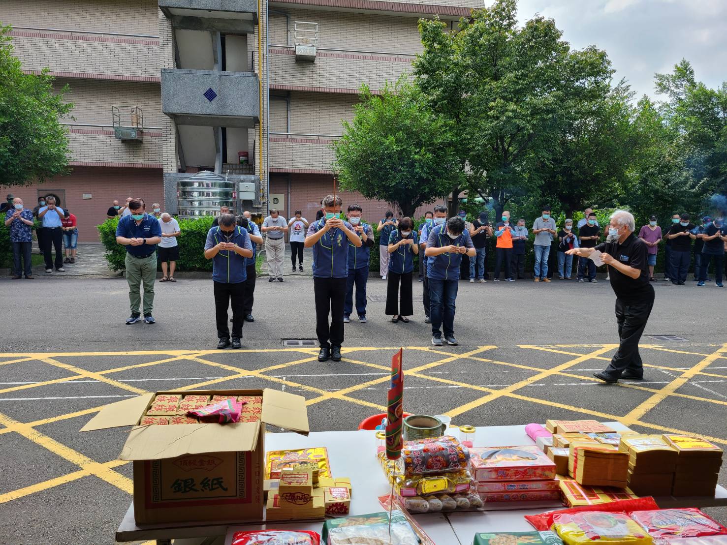 桃園榮家日昨下午擇良時在榮靈祠舉行祭祀典禮,祭典簡單隆重。另因應民間習俗及慎終追遠的精神,準備了祭祀供品進行中元普渡,並請法師誦經普渡眾生、祈求平安,同時於家區道路灑淨,儀式平安圓滿完成。