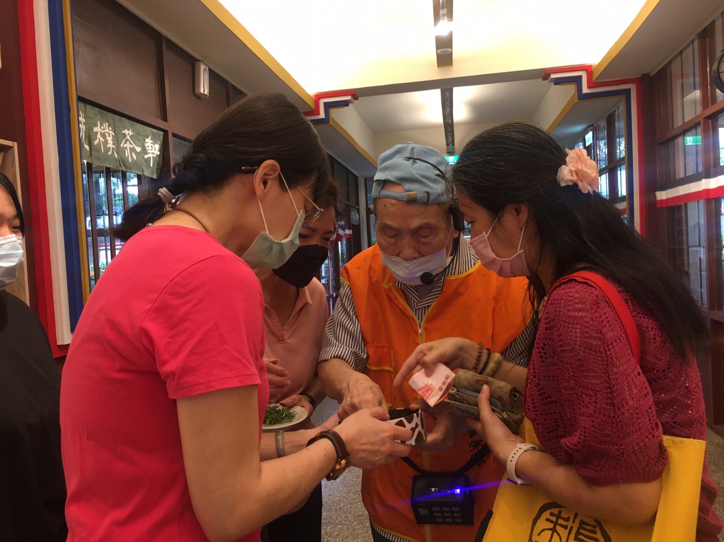 失智長輩與其他養護堂住民交流,長輩捧場迷迭香味好舒心