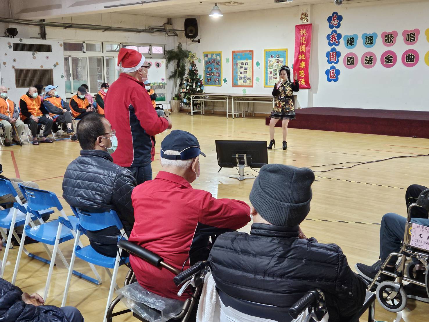 桃園榮家耶誕歲末活動,邀請到樺逸歌唱天地社群關懷團隊,以美妙的歌聲旋律 陶冶長輩心靈、動人的舞蹈姿態 帶給長輩活力。熟悉的經典旋律帶爺爺奶奶回味美好時光,豐富的舞蹈組曲讓長輩不禁跟者鼓掌律動,並搭配趣味的腦筋急轉彎 團員的熱情猶如冬日暖陽,現場充滿快樂的氛圍