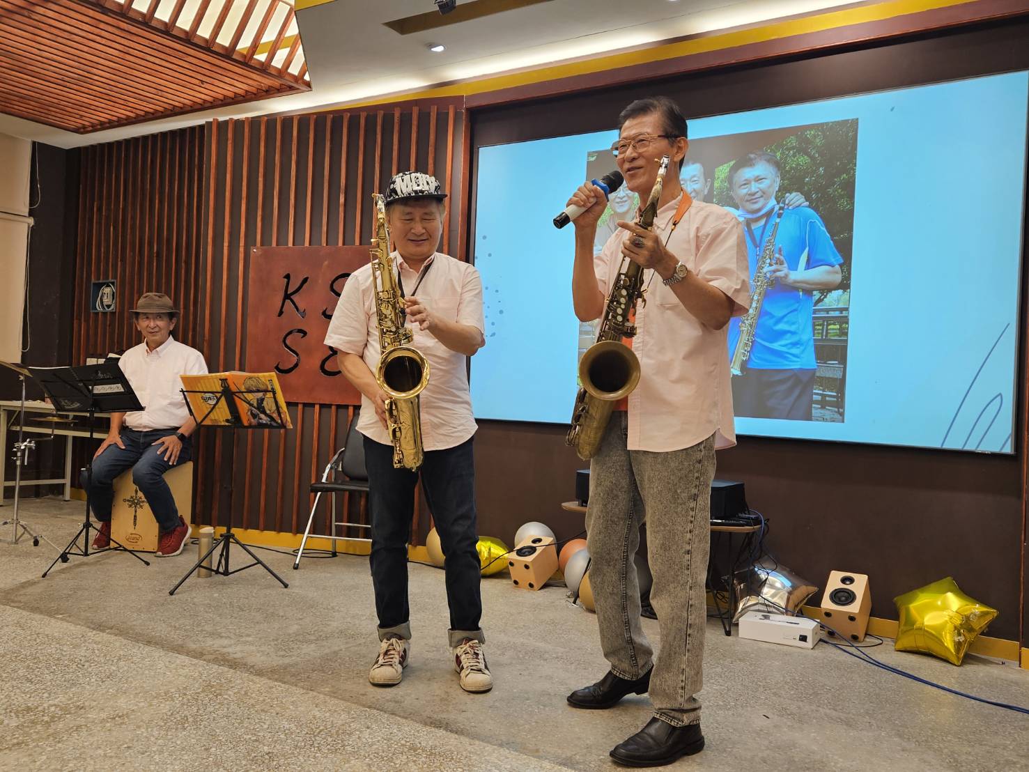 溫馨五月天,桃園榮家於日前在簡報室舉辦「媽媽咪呀~母親節咖啡音樂饗宴」,特別邀請到「老兵樂團」進行薩克斯風演奏,用音樂傳遞對母親的祝福,現場布置成咖啡音樂會 在咖啡香中聆聽悠揚的樂音 榮家獻上母親節蛋糕和花束 大信里里長王沛靜特別準備康乃馨花束送達現場,共同祝福現場的最佳女主角,奶奶們拿到花束笑得合不攏嘴 其他長輩紛紛鼓掌給予祝福,現場洋溢幸福氛圍