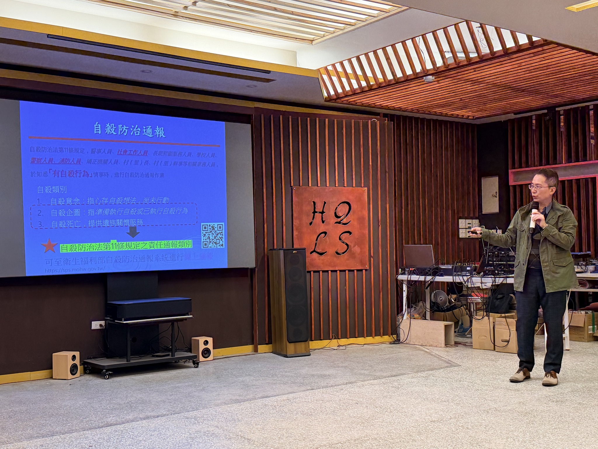 桃園榮家為強化員工心理健康意識與自殺防治觀念,於11月18日下午2時45分至3時40分舉辦「自殺防治」課程,由台北榮總桃園分院身心科徐立仁主任蒞家進行講座。