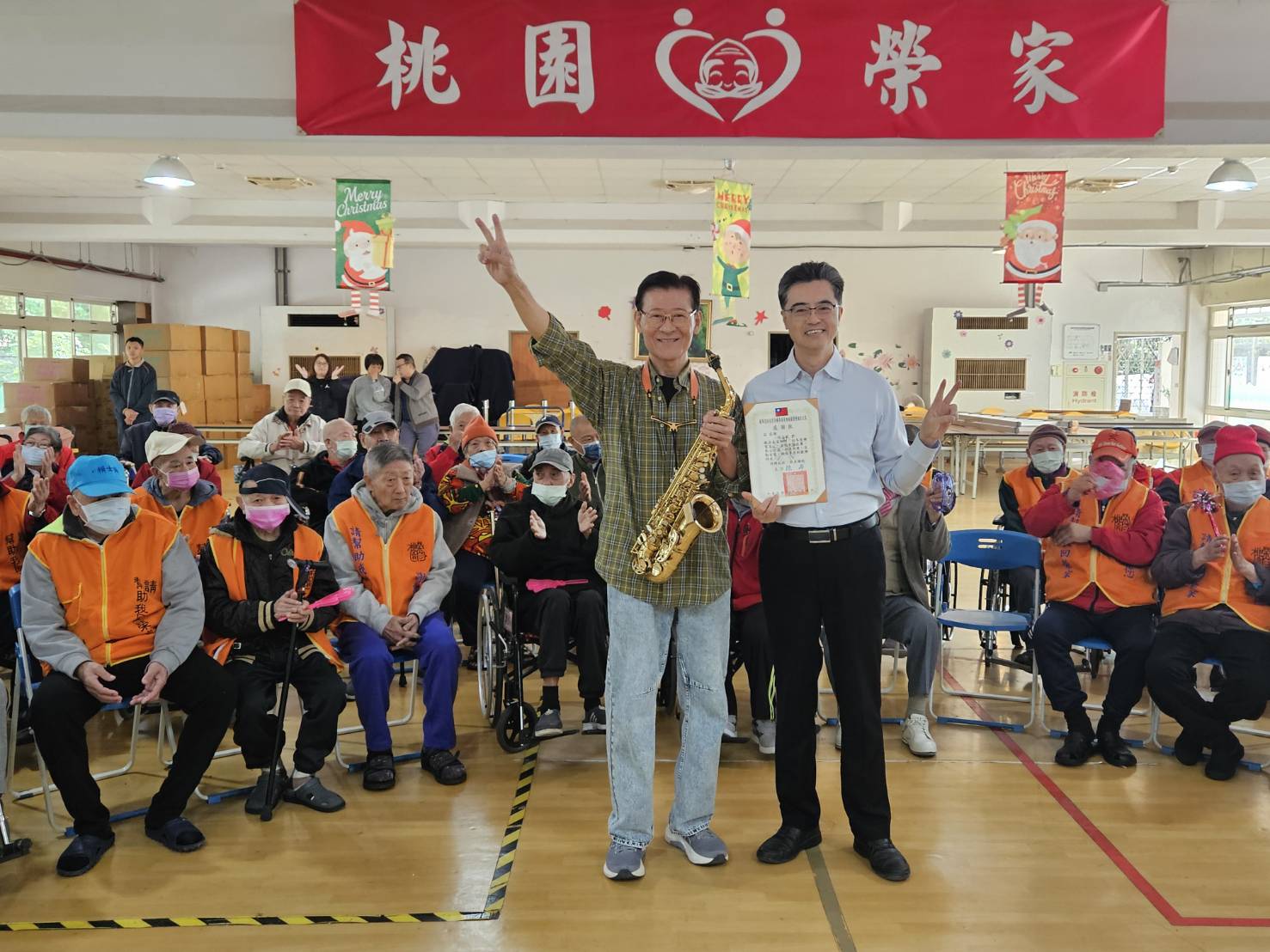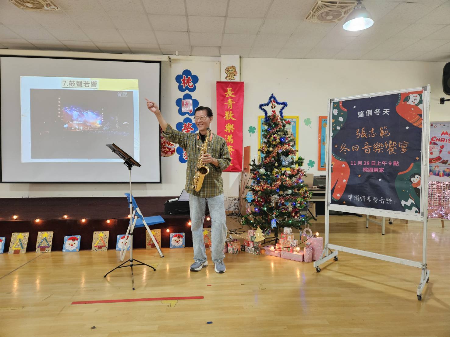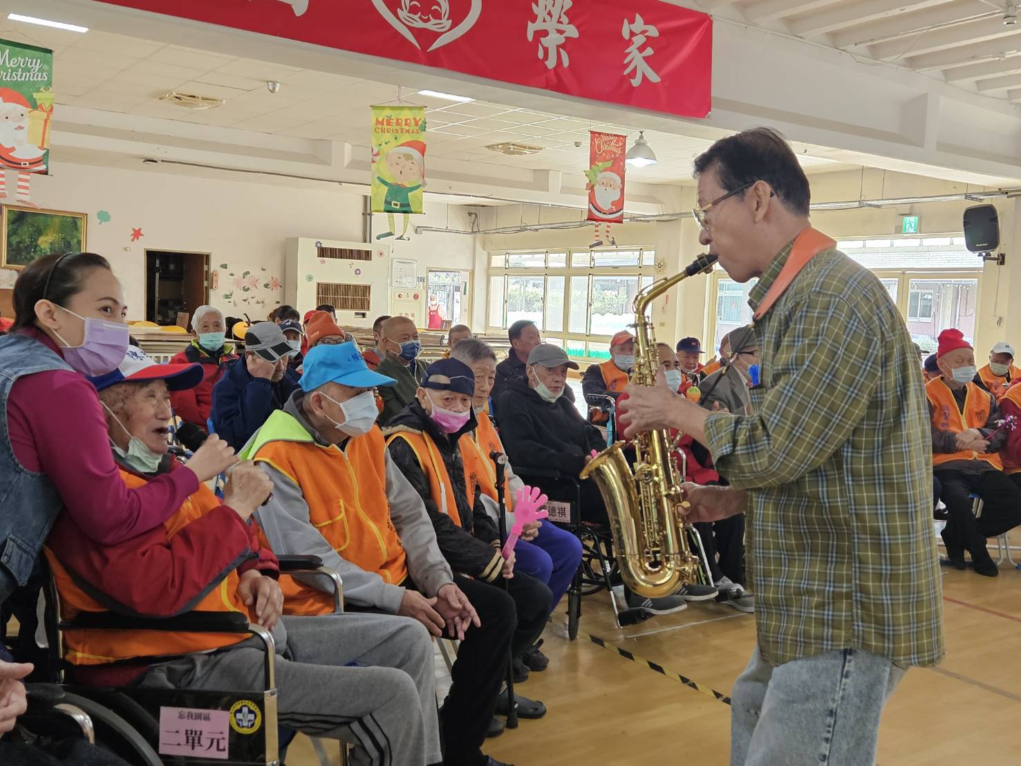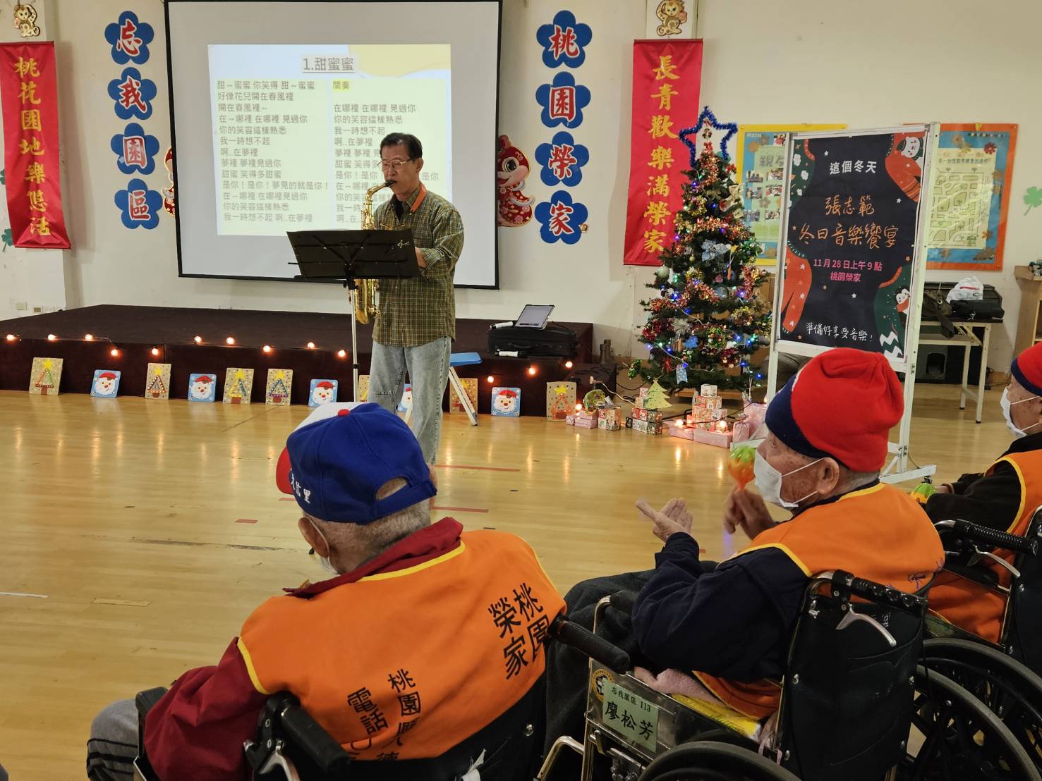 為讓失智長輩在初冬時節感受音樂療癒的溫暖氛圍 退役少將張志範先生於今(28)日前往桃園榮家失智園區 以薩克斯風帶來一場動人的「初冬音樂饗宴」。演奏曲目涵蓋經典國語老歌、台語金曲、民歌及流行歌曲 熟悉的旋律一下,園區內的失智長輩紛紛跟著節拍輕敲 哼唱,甚至開心點歌 場面溫馨熱鬧