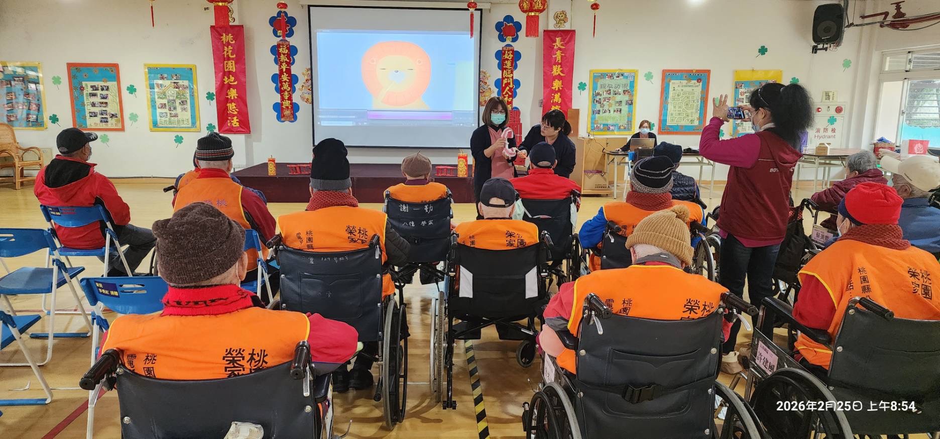 口腔健康為全身健康之本,桃園榮家於2/25安排健康講座,由保健組吳育禎護理師講解口腔保健行動 包括正確刷牙及如何使用假牙清潔錠、黏著劑的重要性 活動中長輩們分享使用假牙上常遇到的問題,透過互動交流提升長者對於口腔健康的良好習慣認知 與會長輩受益良多