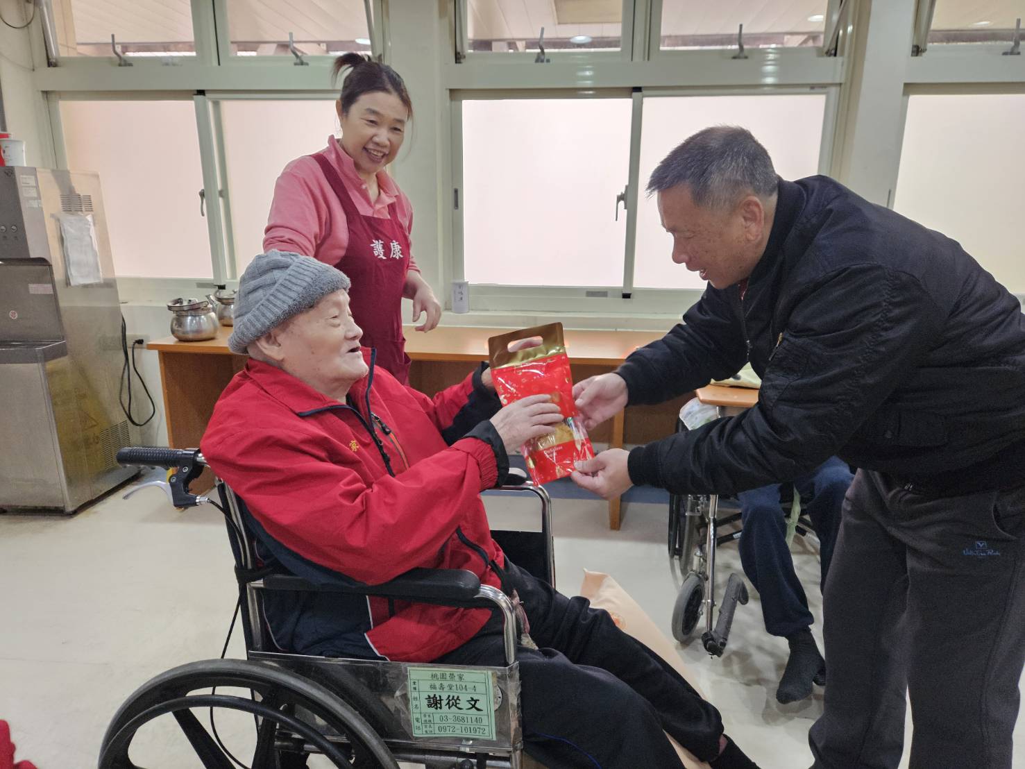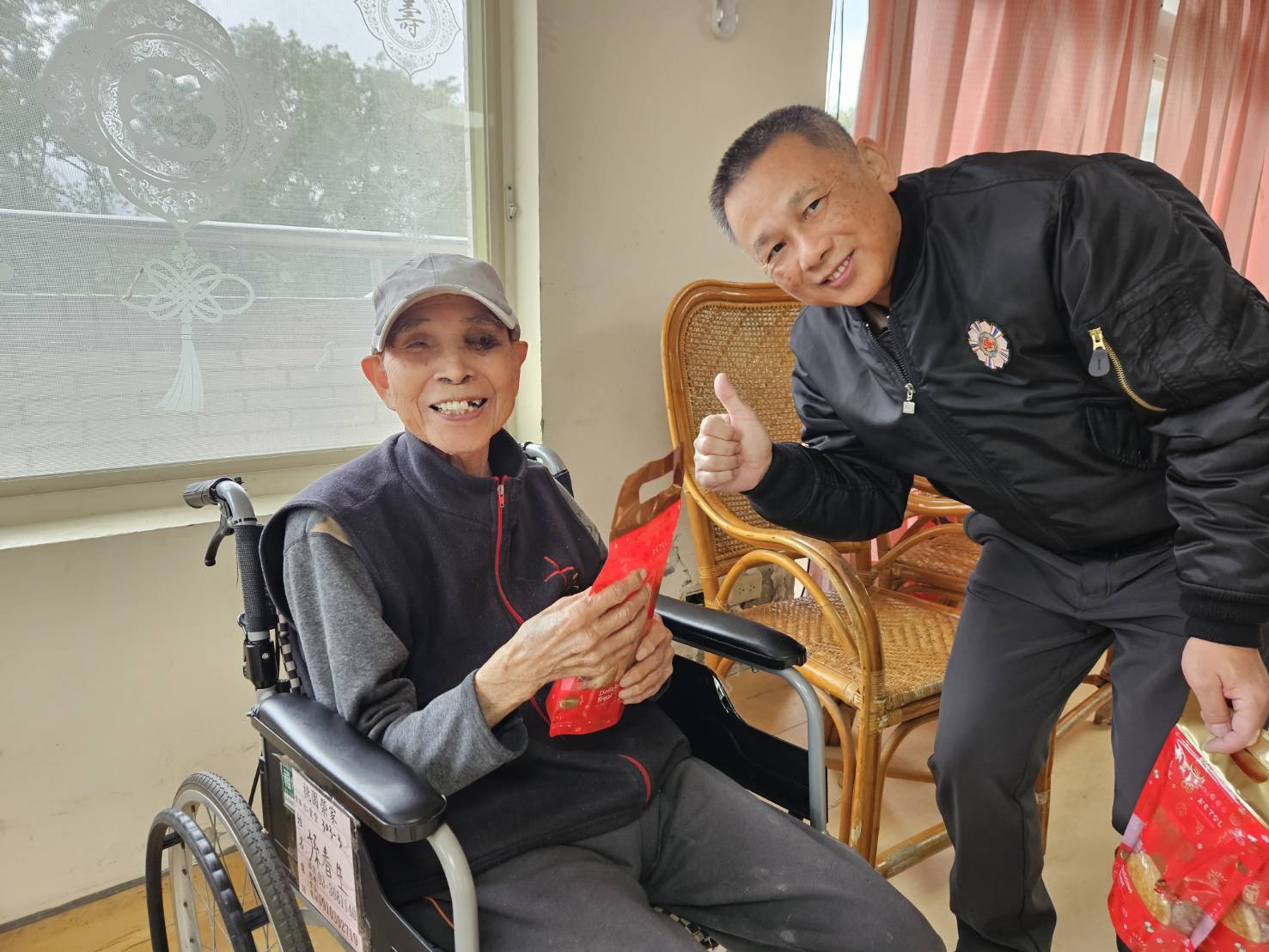 春回大地,福氣臨門,新年的喜悅在家區處處綻放 2月17日大年初一上午,桃園榮家辦理「馬上添福迎新年」活動,榮家特別準備新春點心福袋 寓意新的一年平安順遂、生活甜美 陪伴長輩在新歲首日迎來滿滿福氣與甜蜜滋味 恰逢輔導會就養處張文江專委至本家賀年訪視,一同與長輩賀歲拜年 長輩備感關懷。