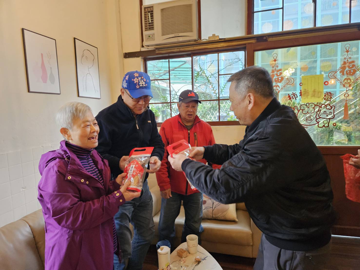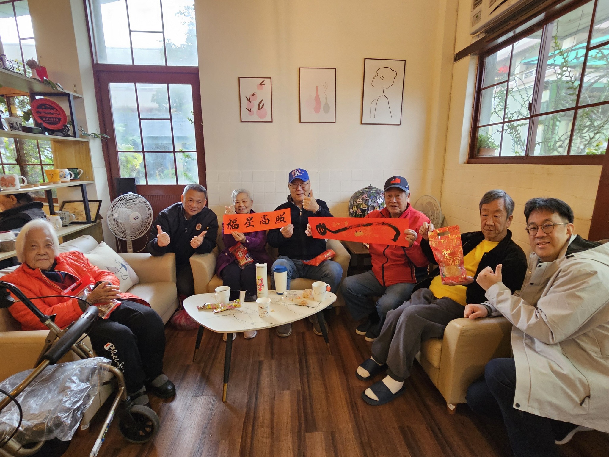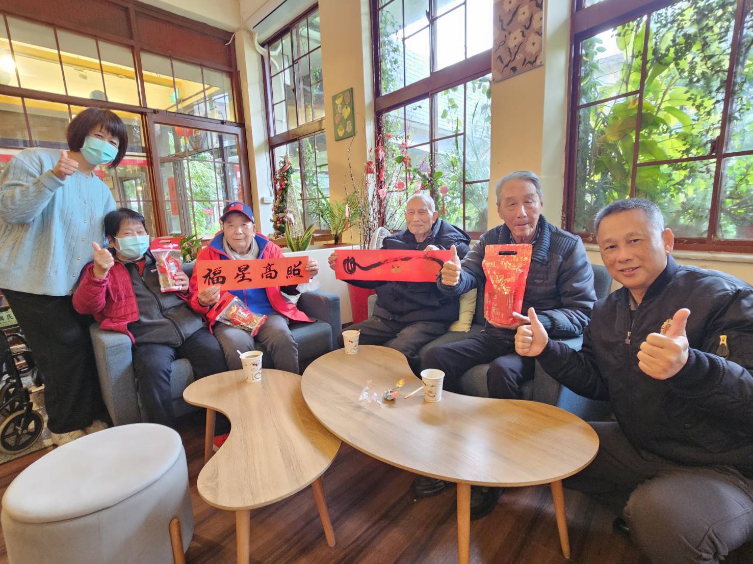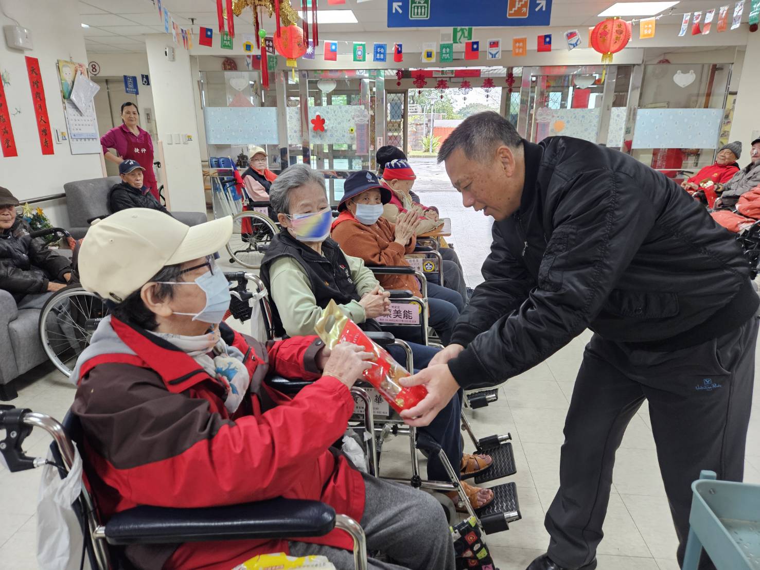 活動由年節值勤高勤官許樹池副主任、偕同總值日人員於福字餐廳、養護堂及榮家咖啡館逐一拜年道喜,發送福袋,親手將祝福送到每位長輩手中。長輩們接過福袋時笑容滿面,紛紛開心回饋表示:「新年一早就有甜甜點心,心情也跟著甜起來!」、「在榮家過年真幸福,有人陪、有福拿」沿途住民彼此互道「新年好」 家區洋溢著濃濃春節氣息。此外,榮家於初一、初二推出免費咖啡春節時光 讓留家長輩與前來會客的親友共享溫馨片刻,在咖啡香中交流情誼、共度年節