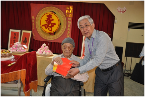 桃園榮家照顧榮民長輩成效卓著,每年均為十多位滿百歲之榮民長輩慶祝百歲生日。長輩的健康就是榮家照顧工作成功的最好證明!