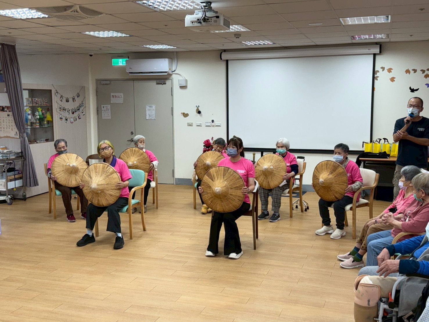 花蓮榮家為持續推展長照社區服務,促進社會資源連結,山青日照中心長輩今日前往東區老人之家日照中心互動交流,更帶來多首表演組曲,現場洋溢活力歡愉氣氛。 相見歡從「認識您真好」活動開始,藉由音樂律動傳球,讓長輩透過自我介紹及接觸不同人事物,增加認知及社會互動能力。接著長輩戴上斗笠,在歌曲「農村曲」的旋律中,透過舞蹈展現當年農耕生活的辛勞:第二首輕快的「日不落」透過手腳伸展,從起床、刷牙到走路,展現來日照中心生活的一天;最後帶來經典流行韓國歌曲「A.P.T.」為結尾,全場長輩一起手舞足蹈,為活動畫下美好的句點。 花蓮榮家家主任游文勇表示,鼓勵長輩走入社區及參與表演,有助於提升身心健康與生活品質,不僅增強肌耐力及促進肢體協調,記憶節奏、歌詞及舞蹈更能緩解失智症狀,再透過社交互動與上台機會,建立自信、成就感與紓解焦慮,最終達成活耀老化目標。花蓮榮家將持續辦理各項社區推展活動,期盼透過多元連續性照顧模式,一起攜手邁向長照3.0。