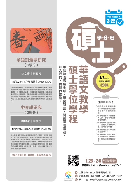 中國文化大學【碩士學分班】熱烈招生中~