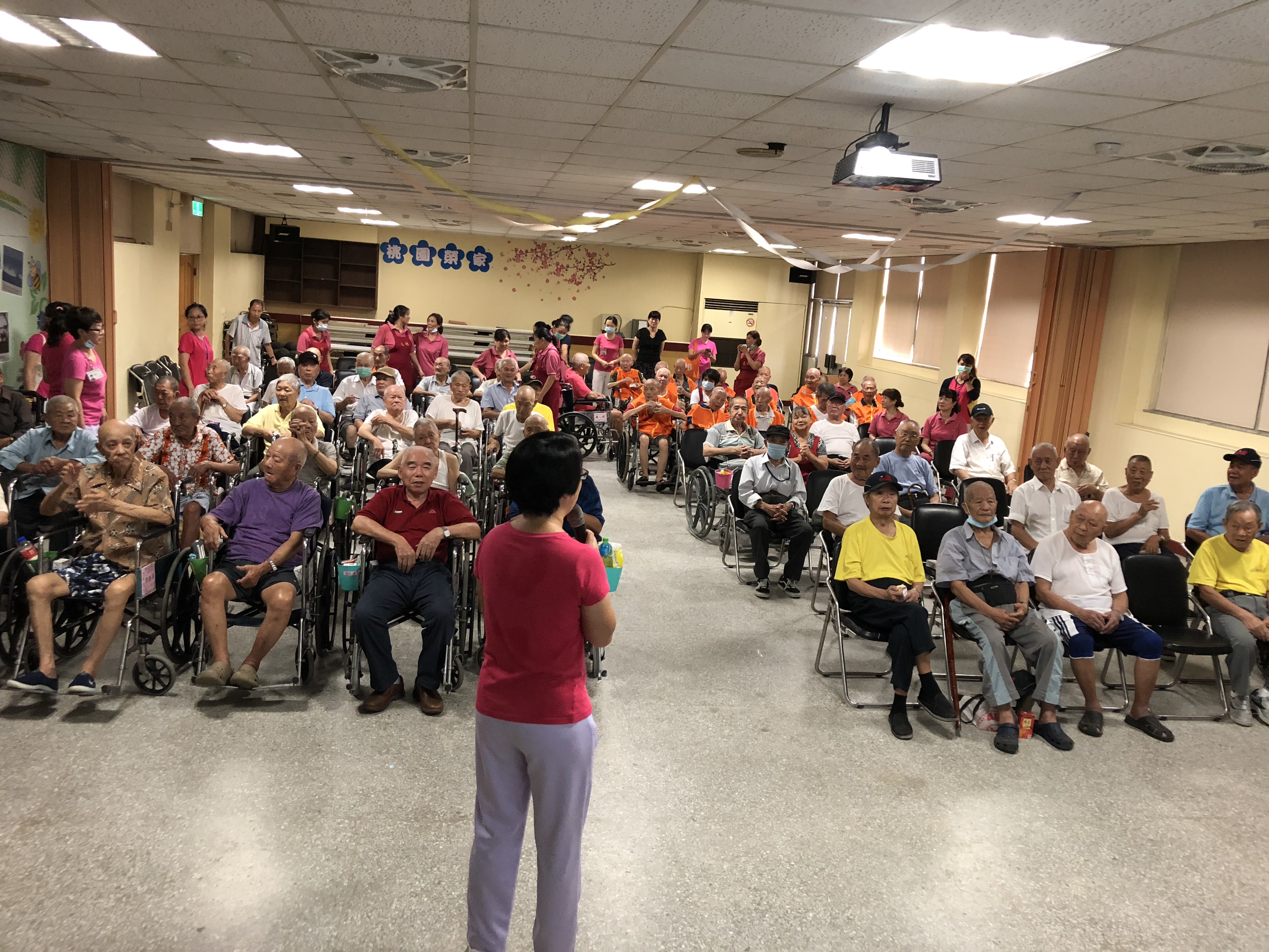 桃園榮家於9月18日上午9時舉辦團體衛教活動,主題為「流感防治」,邀請保健組顧之伃護理師,為家區的伯伯們及鄰里社區的阿姨叔叔們,解說如何防治流行性感冒。 時序即將進入秋冬,長輩們又要面對流感病毒的威脅,所以希望藉由活潑生動的宣導短片,強化長輩對流行性感冒的認識,進而將防治措施深植於腦海,落實於生活中。