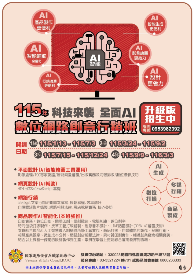 📢 退輔會職訓中心︱自辦︱「數位網路創意行銷班」開始報名囉!