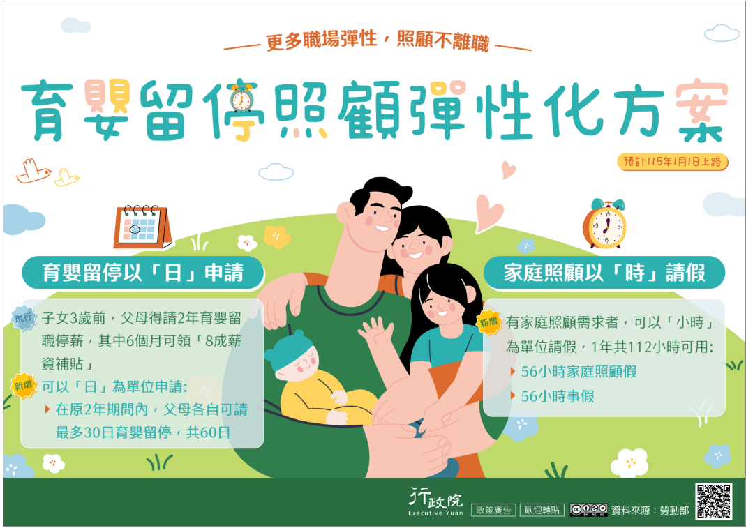 行政院新聞傳播處推廣「育嬰留停照顧彈性化方案」草案政策電子圖文說明