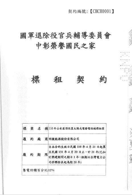 中彰榮家110年公有屋頂設置太陽光電發電設備標租案