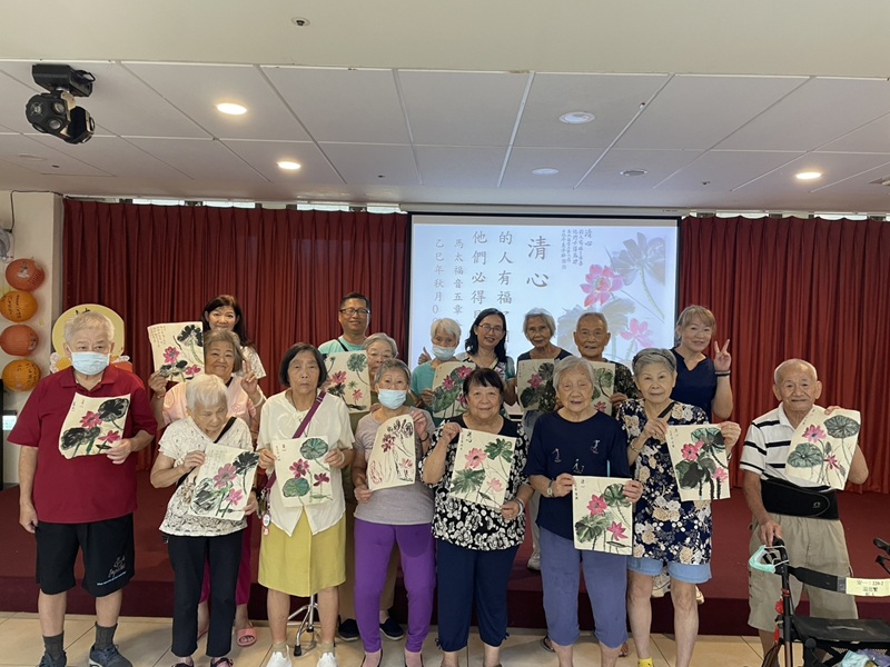 新竹榮家近日邀請社團法人台灣星光品格教育協會林老師,帶領家區長輩們一同體驗國畫臨摹藝術,本次主題為「荷花」。在靜謐的午後時光中,長輩們拿起毛筆,隨著老師的指導,一筆一畫間描繪出荷花的清雅與韻味。 林老師細心講解筆法運用與構圖技巧,並分享荷花「出淤泥而不染」的寓意,鼓勵長輩們在創作中體會生命的堅韌與純淨。長輩們聚精會神地臨摹,有的筆觸細膩柔和,有的氣韻生動奔放,畫面上每一朵荷花都如同心靈的映照,綻放著屬於自己的風采。 在墨香瀰漫的空氣裡,長輩們不僅享受創作的樂趣,也在彼此交流中分享對藝術與生活的感悟。林老師親切地逐一指導,現場洋溢著溫馨與專注的氛圍。 一幅幅荷花畫作完成後,長輩們臉上綻放出滿足的笑容。那不僅是一張張作品,更是長輩們心靈的詩篇,象徵著平和、純淨與生命的美好。 相關照片