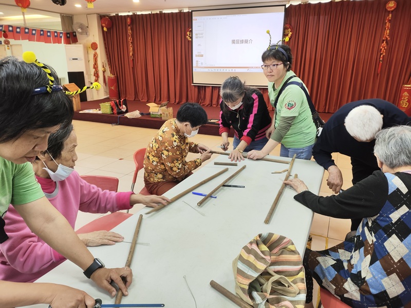生活有愛,樂智無礙,食農共學 在新竹榮家關懷據點「樂智學堂」的長輩們化身為小小生態建築師,參與了充滿意義的「食農共學」活動,是一場關於生命與自然的深度對話。 老師帶著長輩們認識園區裡的生態功臣「獨居蜂」。不同於會成群叮人的蜜蜂,獨居蜂是溫和的授粉高手。長輩們聽得津津有味,紛紛驚嘆:「原來這些小客人在果園裡這麼重要啊!」 接著進入最期待的動手做環節!長輩們用心地將一根根細長的蘆葦桿與竹管,整齊地紮進木盒中。雖然手部動作需要耐心,但阿公阿嬤們眼神專注,一邊組裝一邊討論著:「這洞口要留多大,小蜂才住得舒服?」、「我這間是獨棟別墅喔!」 現場充滿了歡笑與成就感,一張張與作品的合照中,盡是滿足的笑容。 透過食農共學,讓長輩在實踐中延緩老化,讓榮家的庭園成為人與自然和諧共生的樂園。親手製作的「獨居蜂旅館」,將掛在園區的角落,靜候小客人的光臨。