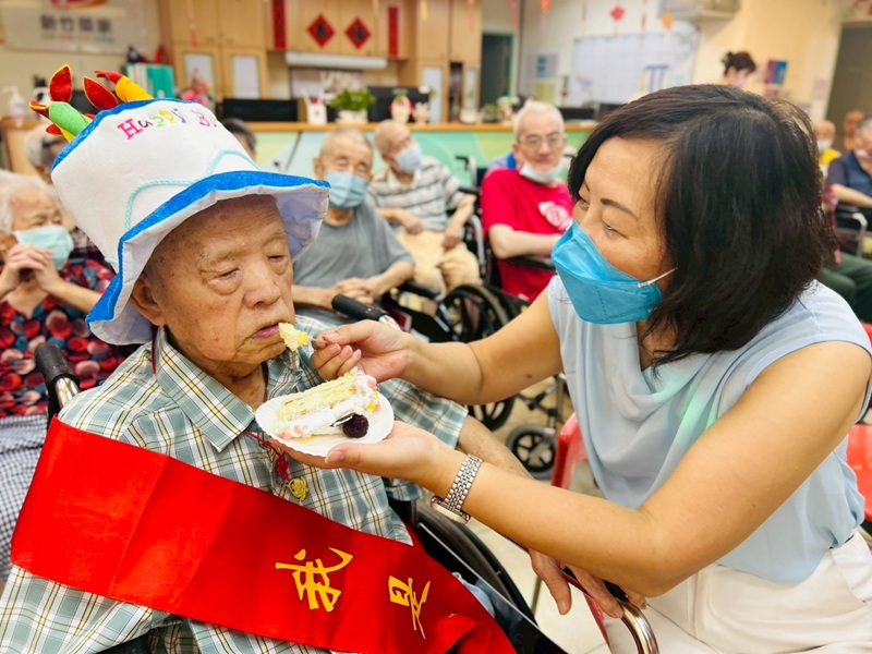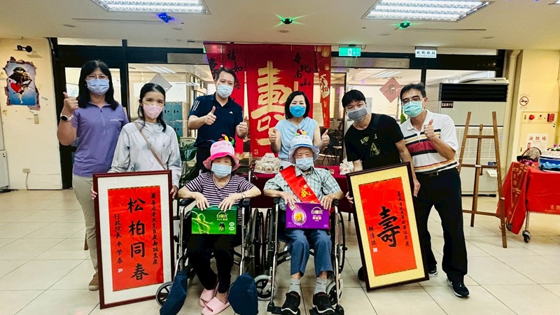 新竹榮家8日為榮民蕭善成舉辦百歲壽辰慶祝活動,迎接榮家第17位百歲俱樂部成員,配偶林玉美及子女到場,為壽星獻上最誠摯的祝福與擁抱,感謝他這一生對家庭的付出,對子女的栽培,給了家人一個安穩的生活,讓現場氣氛溫馨感人。 榮家主任白恩惠及副主任鍾翔宇分別代表賴清德總統、行政院卓榮泰院長致贈壽屏,轉頒國軍退除役官兵輔導委員會主任委員嚴德發致贈金壽桃項鍊,象徵國家對嵩壽榮民的高度敬意與感謝,同時致贈養生禮盒,祝福蕭善成福壽雙全,在榮家安享暮年生活。在家人、住民與服務團隊的陪伴下,蕭善成開心接受眾人的祝福。 蕭善成民國15年10月10日出生於湖南省武岡縣,民國36年入伍,38年隨政府來台,民國49年以陸軍軍醫中尉退伍。退伍後,仍延續服務精神,通過退除役軍人轉任公務人員考試,先後服務於臺北榮民總醫院新竹分院與宜蘭農場,勤懇盡責,為人稱道。退休後與家人同住竹東,直到年老後因需人照顧,於112年11月申請與配偶併同入住新竹榮家自費養護,繼續相伴走過歲月長河。 白恩惠表示,蕭善成見證了一位軍醫從戰地到平凡生活的堅韌,也體現了夫妻相伴、彼此扶持的生命溫度。新竹榮家在因應超高齡社會的挑戰下,持續推動多項創新照護方案,包括復能輔具、自立支援訓練、智慧照護與情感陪伴等,期望讓住民在健康與尊嚴中安享晚年。未來也將結合AI智能照護與跨專業合作,打造「科技融入人情味」的照護模式,讓每一位住民都能活得自在、幸福又有尊嚴。