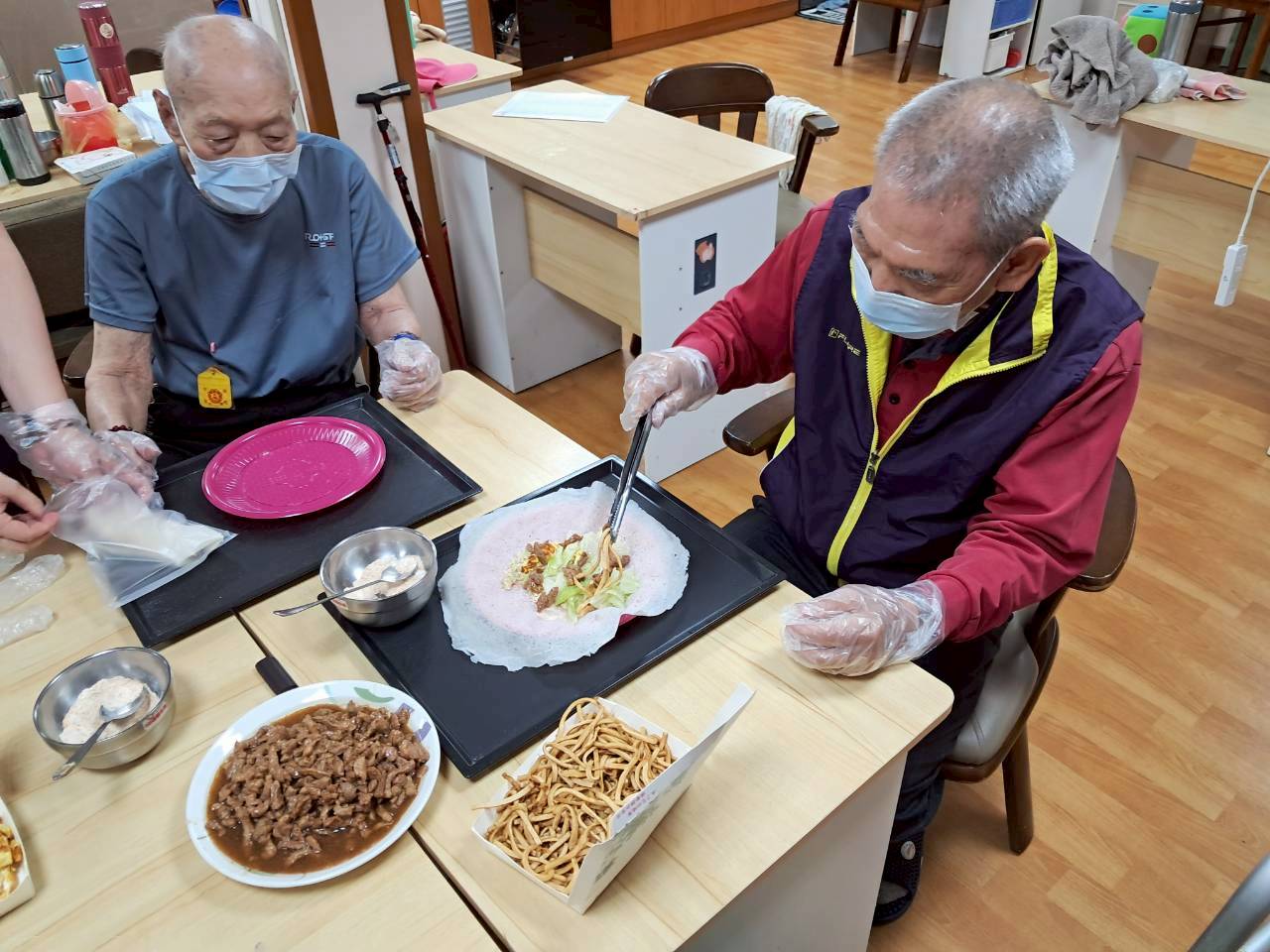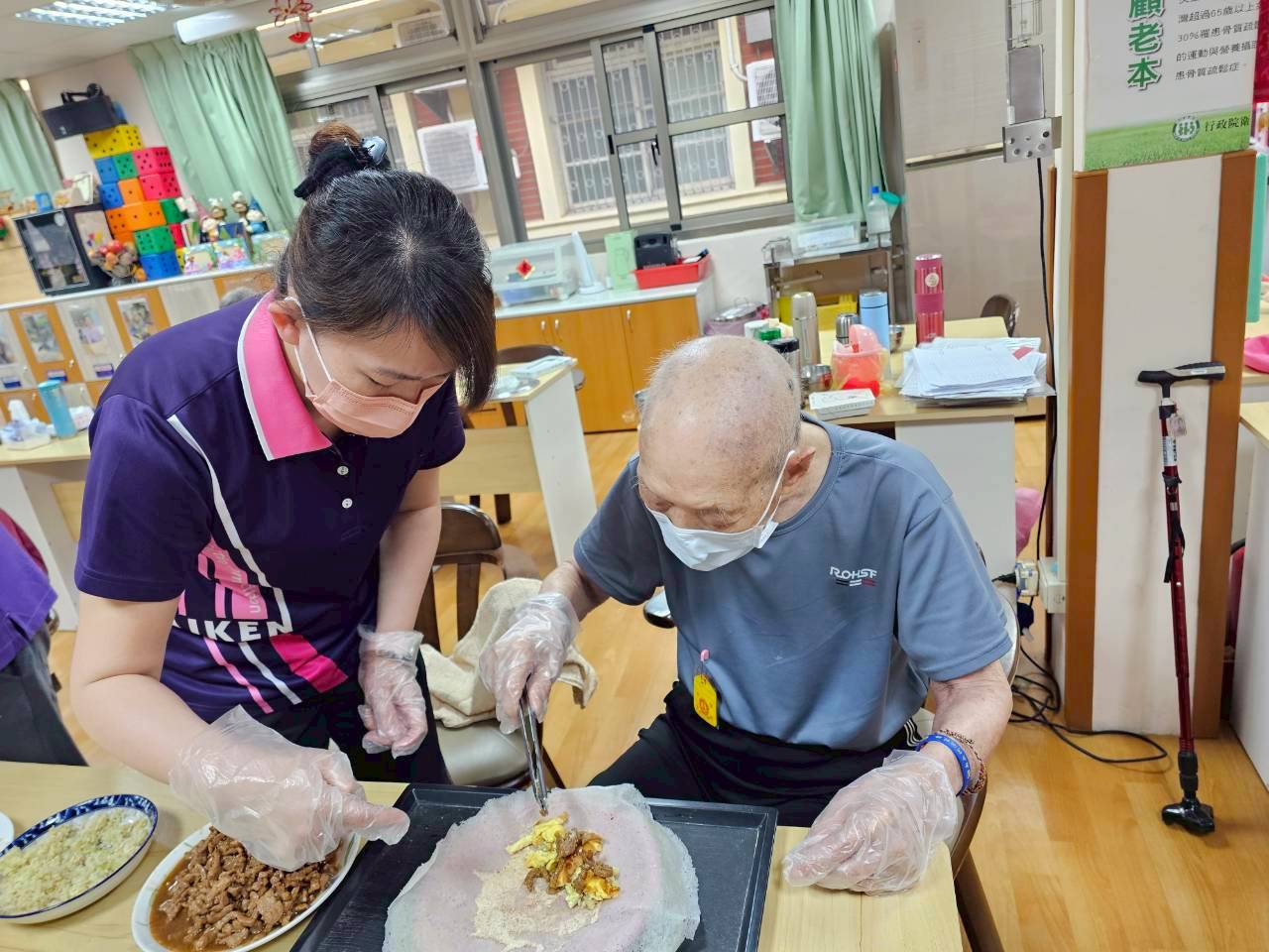 清明時節,不僅是慎終追遠的日子,更是許多長輩心中全家圍坐一起「包潤餅」的溫馨記憶。為了讓這份舌尖上的傳統得以延續,彰化榮家日照中心特別在4月1日舉辦「作伙來捲潤餅」節慶活動,現場準備了琳瑯滿目的在地時蔬與傳統食材,邀請長輩們挽起袖子動手DIY,在花生粉的甜香與清脆的蔬菜香氣中,交織出一場懷舊與美食的五感饗宴。 活動正式登場前,照護團隊便展現了細膩的巧思,考量長輩的牙口耐受度與營養均衡,工作人員預先將高麗菜、爽脆豆芽與香氣馥郁的芹菜洗淨燙熟,並將蛋皮、豆干精細切絲。為了照顧多元的飲食習慣,現場更準備了兩款主料,分別為鹹香誘人的炒梅花肉絲,以及針對茹素長輩特別調製的靈魂素肉燥,確保每一位長輩都能在安全飲食的前提下,品味這份專屬的節慶滋味。 活動現場,長輩們圍坐長桌,看著盤中五彩繽紛的配料,紛紛喚醒了深藏已久的「大廚魂」。幾位阿嬤動作俐落,熟練地攤開薄如蟬翼的餅皮,先撒上一層厚實的花生粉與糖粉打底,再依序堆疊翠綠蔬菜與鹹香肉絲,指尖靈巧地一壓一捲,飽滿結實的潤餅隨即成型。一旁的長輩們也熱絡地交換著自家的「私房配方」,有人偏好糖粉多一點,有人堅持芹菜不可少,在互助遞送食材的過程中,現場滿溢著歡笑與懷舊氛圍。 彰化榮家主任蘇再勝表示:「對長輩而言,最好的照護就是讓『生活感』持續流動。潤餅包容了多樣食材,象徵著圓滿與和諧,這種結合節慶的復能活動,不僅能活化長輩的手指細部功能,更能透過食材的觸控與嗅覺刺激,幫助他們找回過往家庭聚會的美好記憶。我們希望藉由這類生活化的感官體驗,讓長輩在日照中心也能感受到如家般的歸屬感,在互動與分享中,重新找回生活的節奏與尊嚴。」