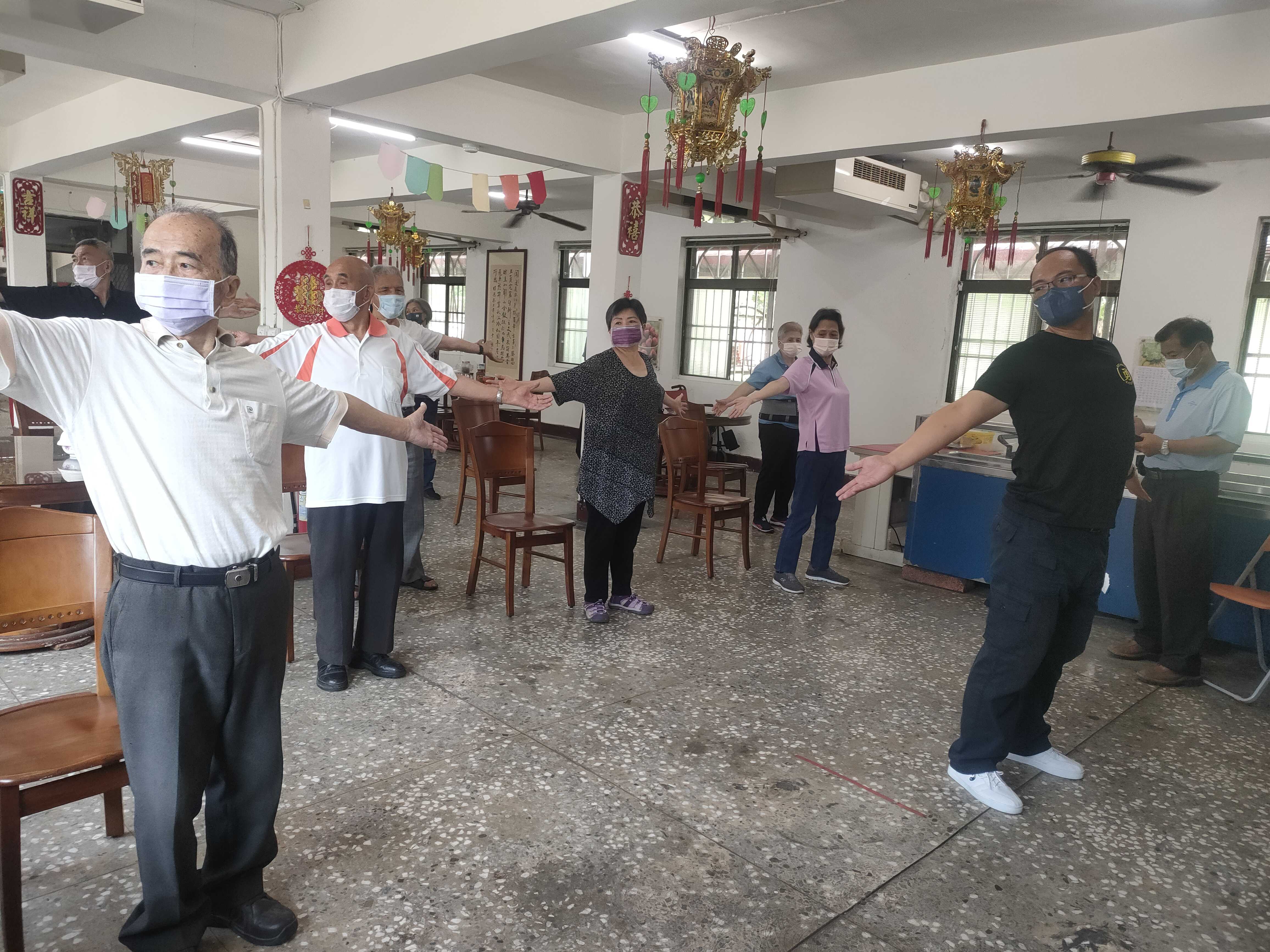 堂長帶動長輩跳八段錦健康操