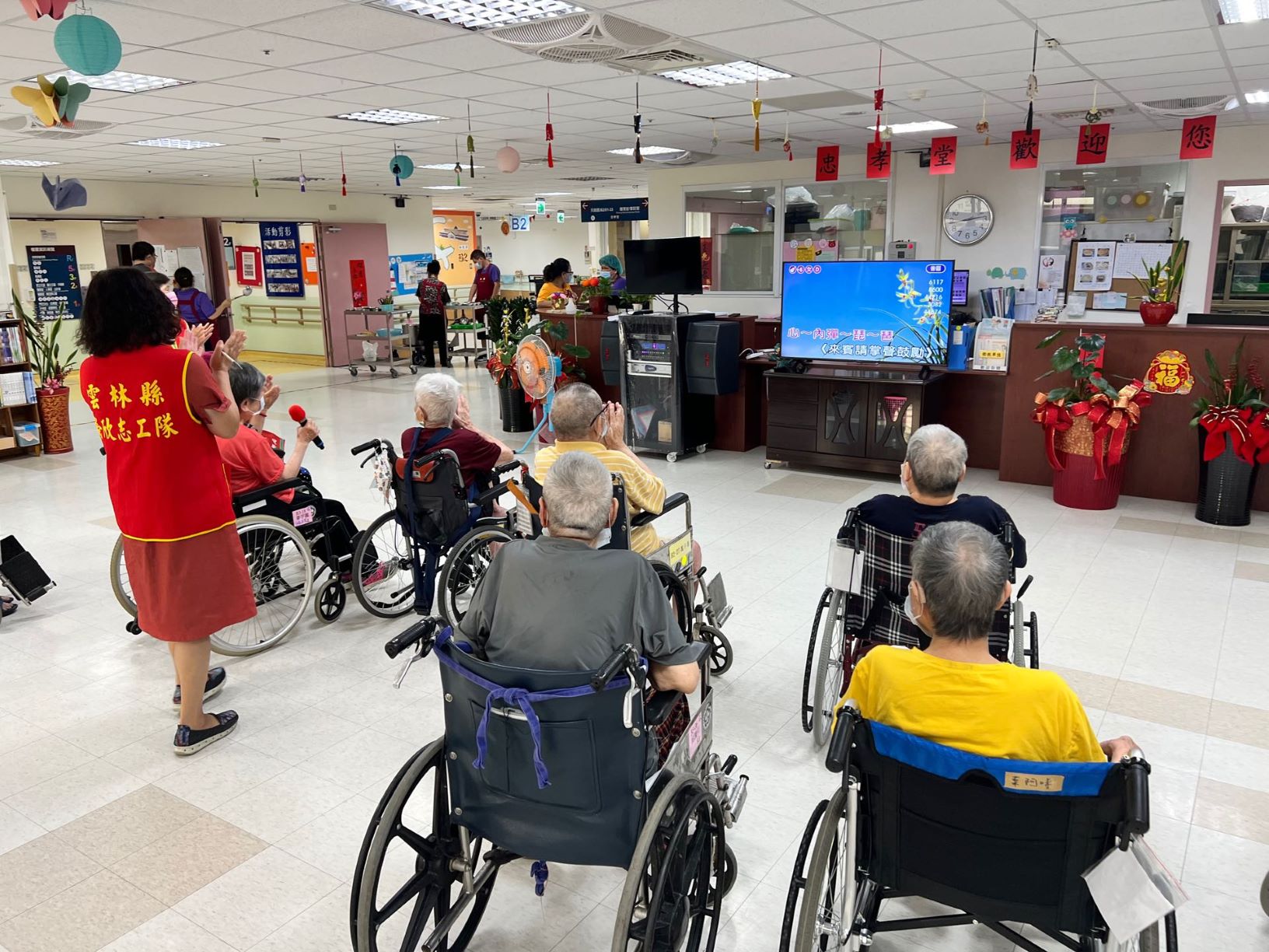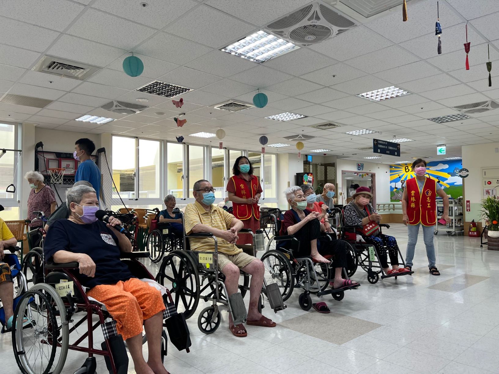 由榮欣志工於每周固定時間到各堂隊陪伴長輩歡唱卡拉OK,藉由唱歌刺激長輩五官及認知、延緩退化且促進身心愉快健康,活動過程中在充滿歌聲及掌聲之下,住民和志工們愉快渡過下午的時光