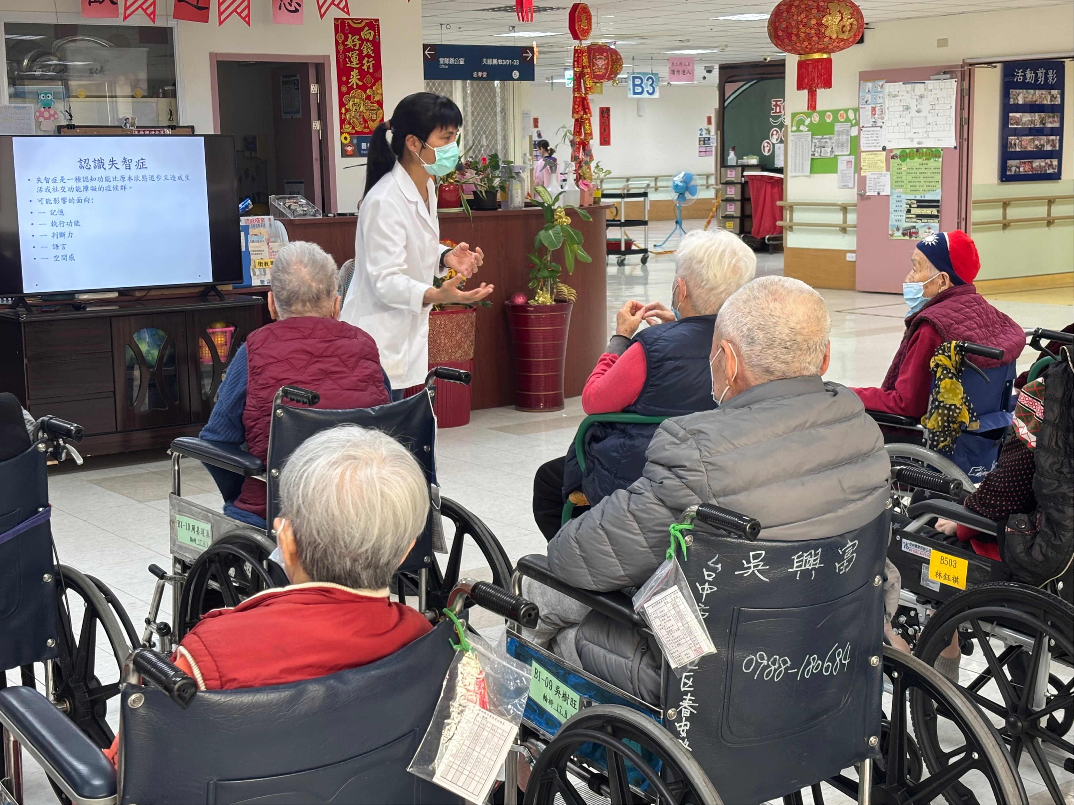 為促進住民健康並提升對失智症預防的認識,今日特別邀請嘉義分院許姿雅物理治療師蒞臨本家,為住民帶來「銀髮族有氧運動與失智預防」的健康分享。許治療師以淺顯易懂的方式介紹適合銀髮族的有氧運動,並帶領住民一起進行簡單、安全的運動活動,鼓勵大家在日常生活中培養規律運動的習慣。 在課程過程中,大家一邊運動、一邊互相鼓勵,氣氛非常輕鬆愉快,不僅活動了身體,也讓心情變得更加開朗。透過這次活動,不僅讓住民了解運動對於促進身心健康及預防失智的重要性,也在輕鬆愉快的氣氛中增進互動與活力。