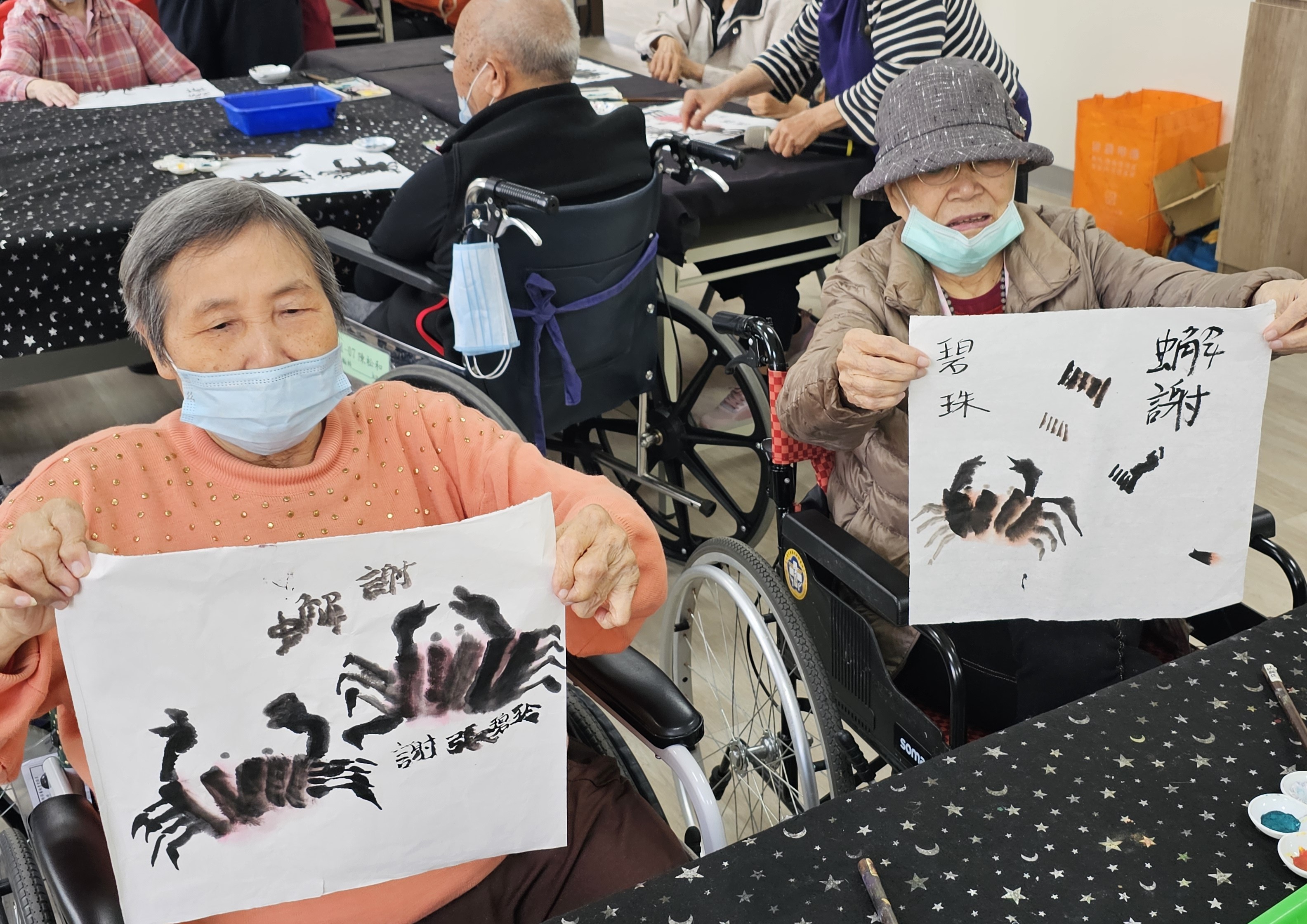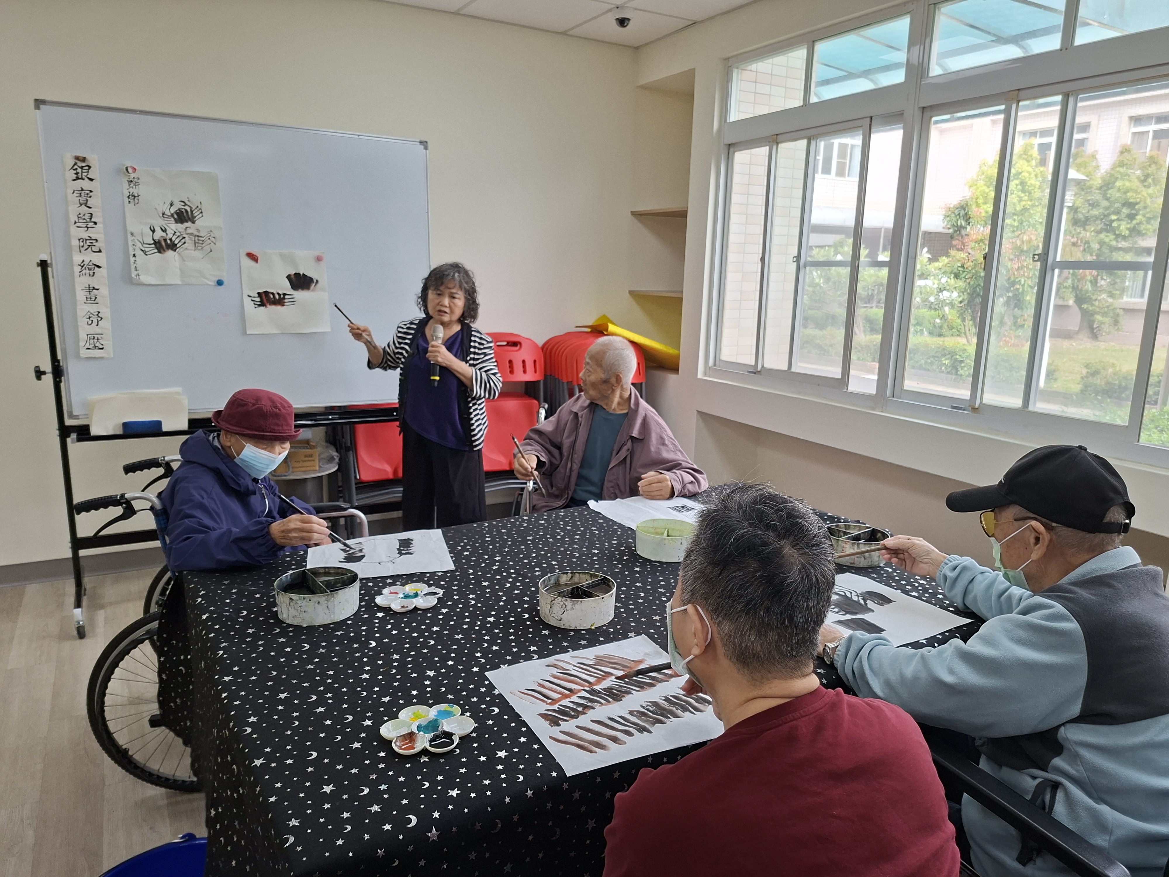 本次課程邀請 黃素丹老師 帶領長輩們進行繪畫藝術創作,透過多元藝術媒材的運用,讓長輩在創作過程中放鬆心情,享受自在愉悅的時光🎨 在畫畫的過程中,長輩們不僅能自由表達情緒,也有效舒緩壓力,減少憂鬱與焦慮感。活動現場由志工及役男陪伴協助,與長輩們一同創作與互動,讓彼此之間的交流更加熱絡,氣氛溫馨又充滿笑聲。