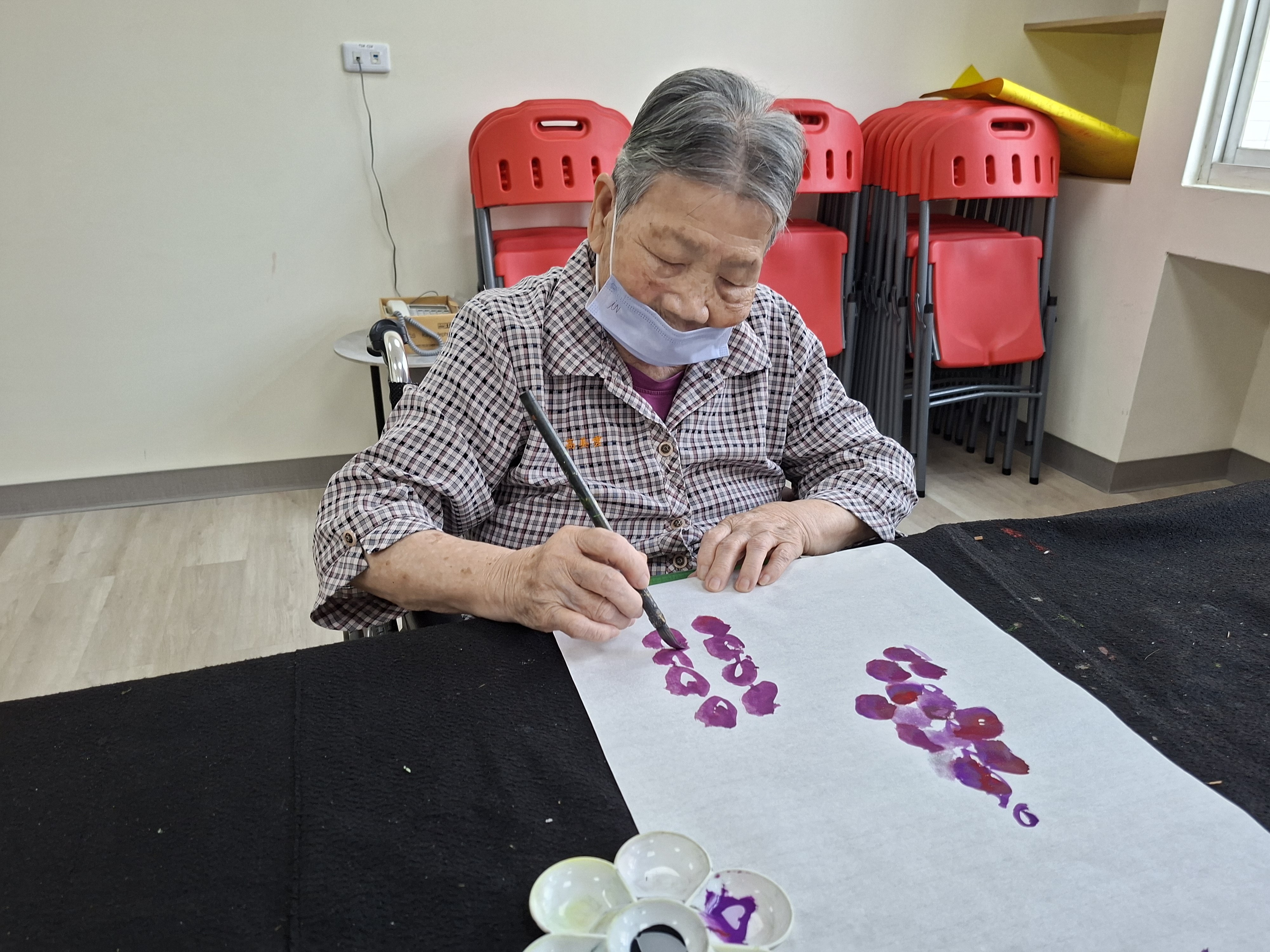 這次的主題是「葡萄」,老師還貼心準備了新鮮葡萄,讓大家一邊品嚐、一邊觀察,再動手畫畫,整個過程既有趣又有感覺,長輩們都笑得好開心!