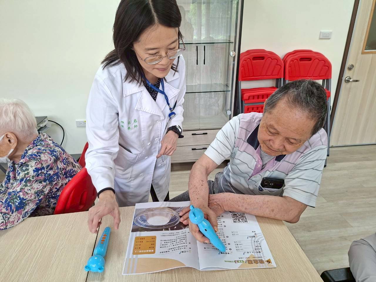 肌少症衛教 × 軟質飲食製作|守護長輩健康的每一步 課程以淺顯易懂的方式,帶領長輩認識肌少症,教大家如何透過日常飲食與生活習慣,逐步找回肌力與活力,同時結合「簡易軟質飲食」實作教學,讓吞嚥較困難的長輩,也能吃得營養、安心又開心。 特別的是,現場還運用了臺大醫療團隊自行研發的「點讀筆書」,讓長輩透過聽覺輔助學習,增加互動與記憶,笑聲與驚喜不斷!此外,也透過高階體脂肪分析儀器,協助長輩更了解自身身體組成,讓健康管理更精準、更有方向。 整場活動不僅專業滿滿,更充滿笑聲與溫度,長輩們專心投入、踴躍參與,在輕鬆氛圍中收穫滿滿! 相關照片