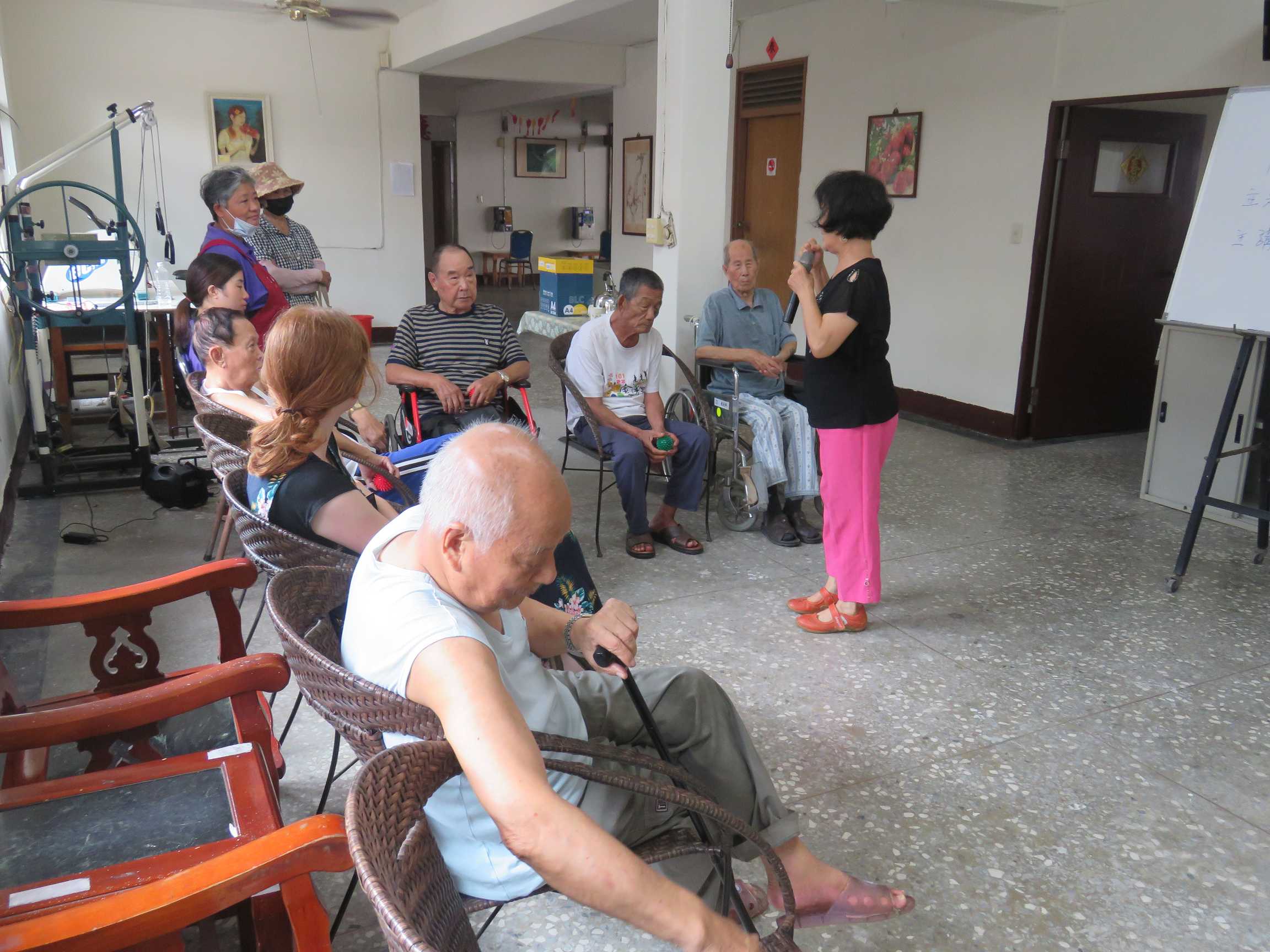 榮欣志工黃素丹至和平堂活動中心帶住民做團康活動和健康講座,今日主題是預防跌倒,老人跌倒易造成嚴重傷害,因為老人常合併有骨質疏鬆及功能減退的問題,曾經跌倒過的老人,會因為害怕再跌倒而不敢走路,造成退化嚴重,所以平時的保養與預防很重要。 志工教導住民做簡單的運動,透由適當的身體伸展增加肌耐力,預防跌倒,還有一些輔具的使用,如柺杖、助行器等,都是可以使用的工具 。