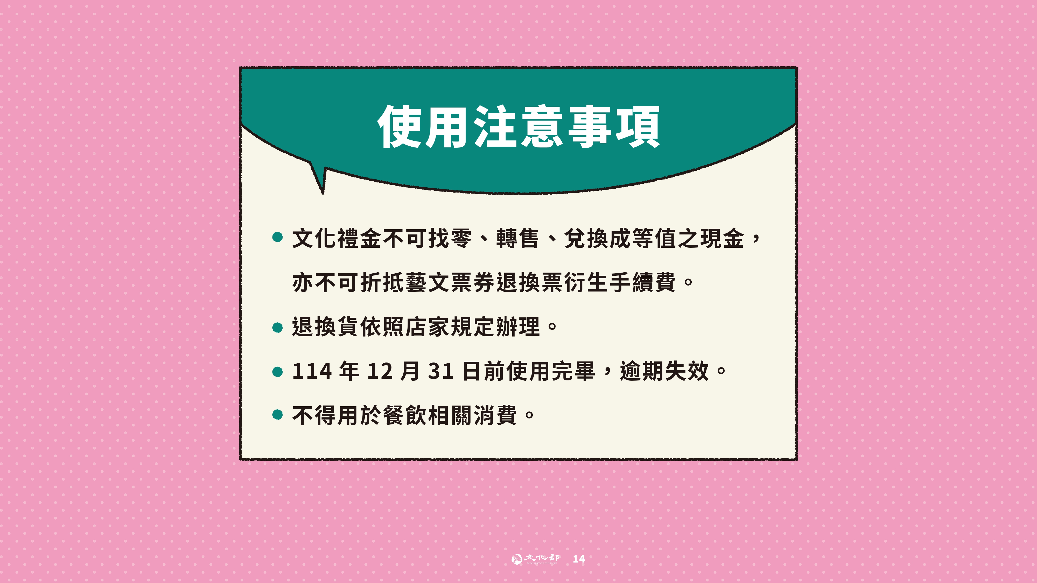 - 有關文化禮金領用資格、領用方式以及消費地點等資訊請參考下方懶人包。