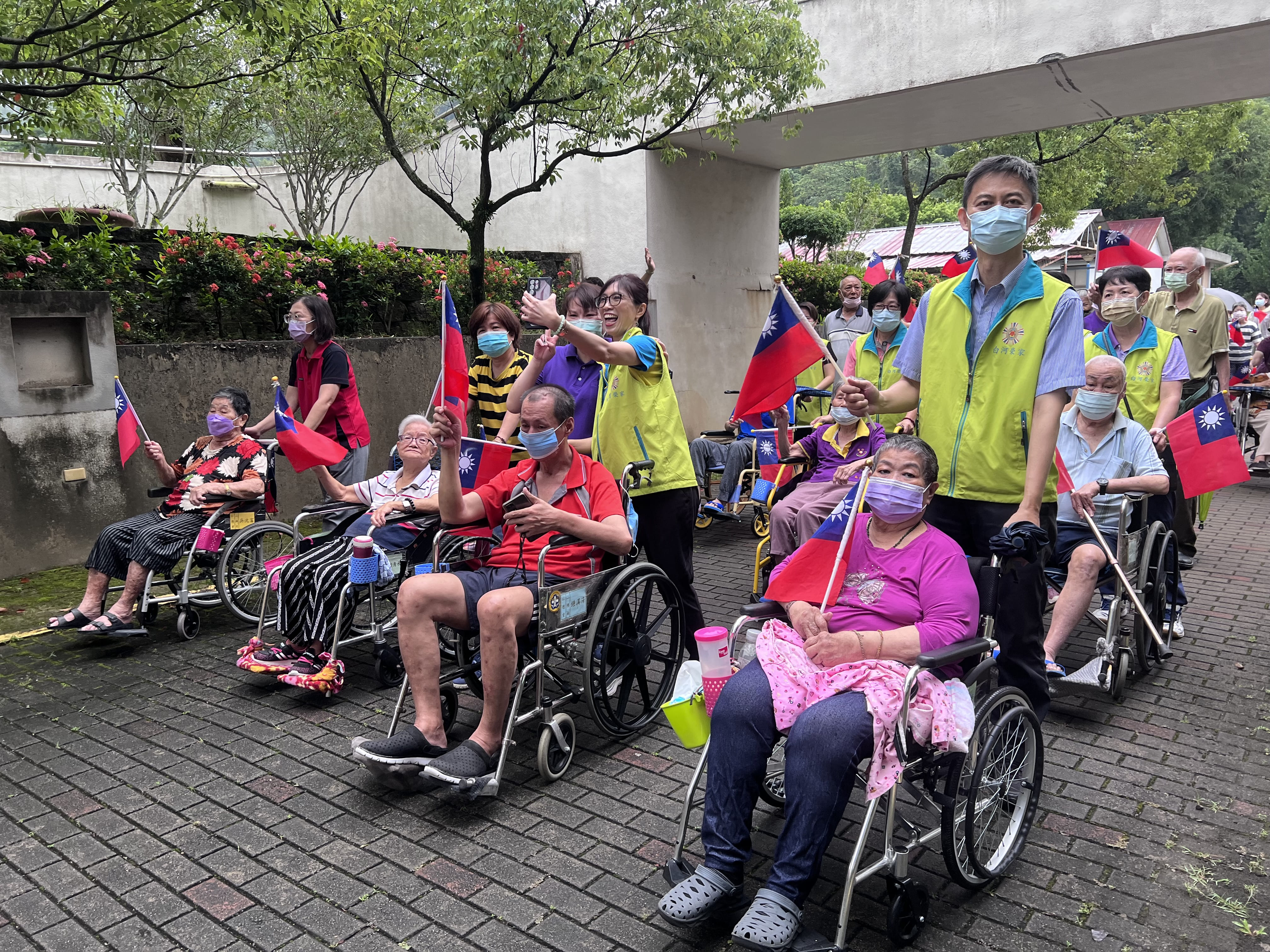 雙十國慶是中華民國的國慶日,白河榮家為緬懷革命先烈創建民國犧牲奉獻的精神,特別在雙十國慶前辦理「光輝雙十旗歡慶」遊行活動,邀請住民長輩以整隊遊行方式,祝賀中華民國生日快樂。 初秋晨風迎面吹拂,上午8時30分在慷慨激昂的愛國歌曲聲中,職員工、安養住民紛至榮家長青樓前集合,連騎電動車的伯伯們也紛紛加入遊行行列,在家主任黃瑞鵬率領下隊伍浩浩蕩蕩出發繞行家區遊行,行至養護樓時加入坐輪椅的長輩們,一同會合,聲勢浩大。 遊行活動中,播放軍歌、愛國歌曲,《九條好漢在一班》、《梅花進行曲》等熟悉歌曲,勾起長輩們軍中的回憶,榮民李伯伯表示,很開心大家一起參加遊行活動,一同感受愛國旗、愛國家的氛圍。活動中另安排「有獎徵答」單元,大家踴躍搶答,氣氛熱烈,活動在一片歡樂聲中圓滿結束。 主任黃瑞鵬表示,透過活動,紀念先烈化小愛為大愛的無私精神,我們能安居樂業,更應感念及珍惜民主成果,熱愛國家,非常感謝住民熱情參與本次遊行活動;白河榮家藉由活動鼓勵住民走出戶外、迎向陽光,推動活躍老化,提升長輩健康活力,並促進住民間情感交流,讓長輩平安、健康、快樂的在榮家頤養天年。