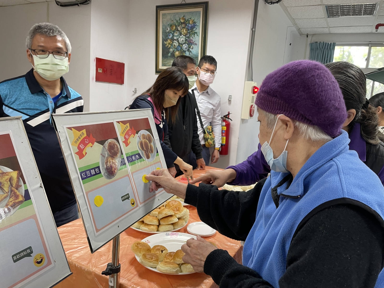 佳里榮家為精進住民每週快樂餐菜單的多樣化,特於今(18)日辦理試吃暨票選活動,由住民來投票選出六道主餐納入每週快樂餐輪替供應。 這次活動主餐有牛肉麵、鍋燒意麵、皮蛋瘦肉粥、小籠湯包、麵疙瘩、水餃、炒麵及炒米粉共八種,再搭配刈包、奶皇包、法國吐司、小餐包、紅豆麵包、馬拉糕、蔥油餅及蘿蔔糕八種「手拿包」,提供住民試吃和票選出六道心目中的快樂餐。榮家主任白永成表示,「手拿包」是榮家的特色,每週三午餐提供快樂餐,除了讓住民在主餐上具不同變化外,吃的滿足、吃的開心,又能帶著一份手拿包當作點心品嚐,增加用餐的愉悅感,連安養住民吳伯伯都說:「每到週三實在有食閣有掠(有得吃還有得拿)。」 榮家主任白永成表示,為了讓大家一起參與活動,特別叮囑照服員務必陪伴每位住民出來試吃和投票,讓選出來的主餐和手拿包都是長輩喜歡吃的,這樣才符合快樂餐的意義。活動過程中,由工作人員將每道餐食放在碗裡送到住民手上,或住民自行拿取試吃,有的住民16道菜都試吃過一番,才願意投下手中的票,失智區的張伯伯說:「這麼快樂的午餐一定要細細品嚐,選出心目中的好味道啊!」 最後,在眾所期待下票選出六道主餐牛肉麵、鍋燒意麵、皮蛋瘦肉粥、小籠湯包、水餃及炒米粉和手拿包刈包、奶皇包、法國吐司、小餐包、紅豆麵包及馬拉糕,其中的小籠湯包和刈包得票數最高,白主任很肯定秘書室與伙食承商大道公司相互合作規劃多樣化餐食,讓住民感受餐餐如同在家般的溫馨。