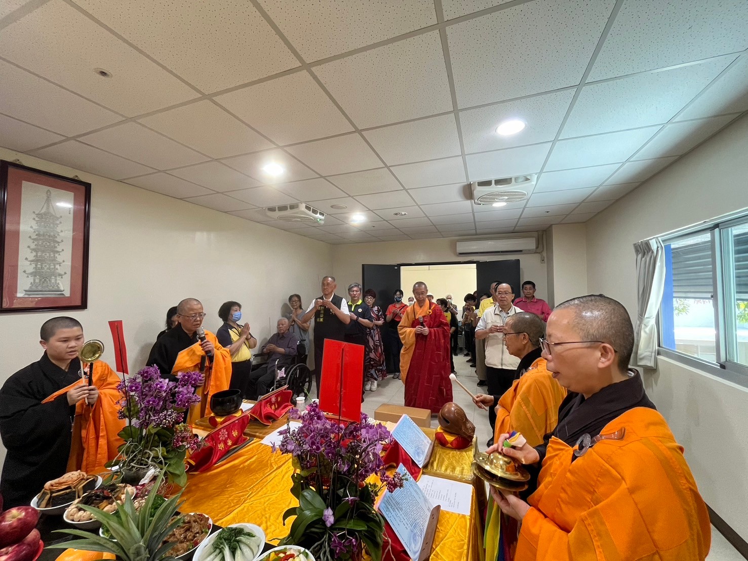 法會由臺南市佛光山福國寺滿渡法師及護法信眾協助相關事宜,並禮請佛光山修持監院室慧思法師擔任主法。法會在王風勝主任、慧思法師、謝玉琴師姐及本家榮民代表陳渝生共同揭幕,隆重莊嚴舉行,在場信眾均共沐佛恩,同霑法益。在莊嚴的佛號誦讚中,佛光普照榮家,與會信眾法喜充滿。