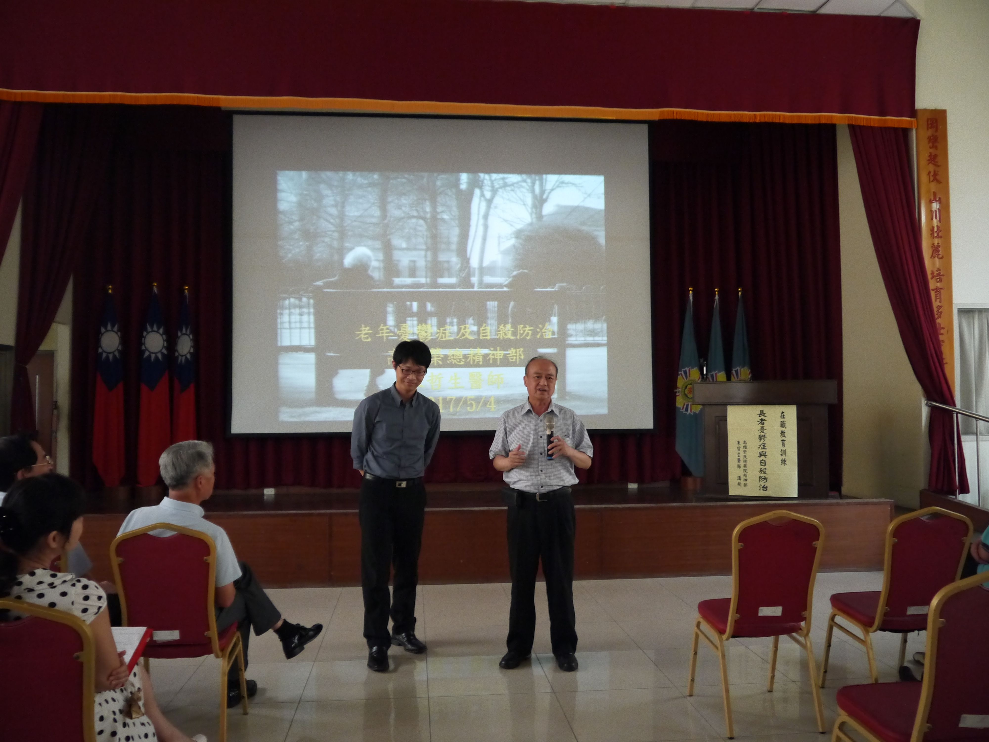 為持續提昇本家專業服務照顧品質,加強員工「自殺防治」專業知能。於5月4日邀請高雄榮民總醫院精神醫學部老人科朱哲生醫師講授「長者憂鬱症與自殺防治」在職教育訓練課程,計有82位員工參加。 家主任陳寶屏期勉所有同仁,朱醫師提供「長者憂鬱與自殺防治」之專業知能內容相當豐富與實用,並提供自殺防治守門人三步驟方式,其中「主動關懷、積極傾聽」「適當回應、支持陪伴」之介入,為降低自殺行為之積極方法,希望每位同仁藉此教育訓練能實際運用榮民長輩自殺防治之工作。。(岡山榮家李玲輔導員)