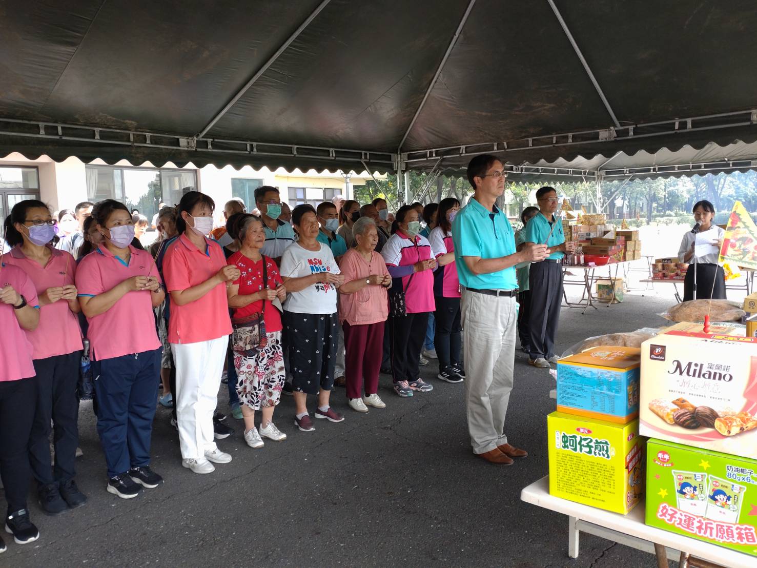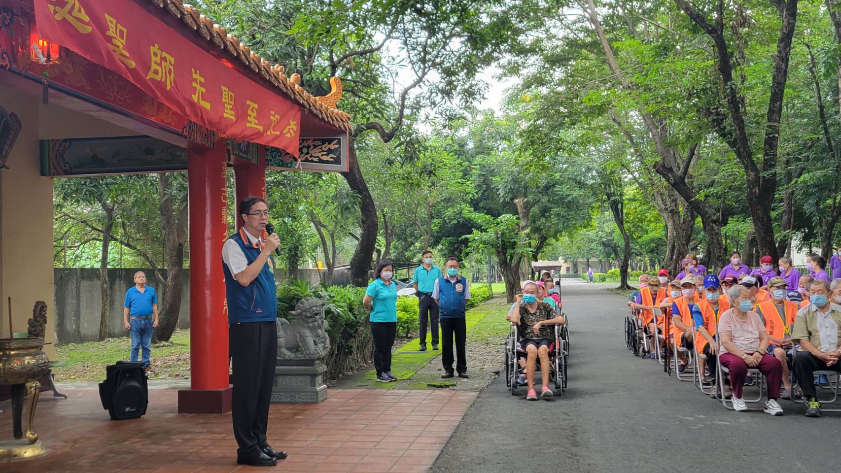 家主任假忘我園區中庭主持陸海空相互關懷協會敬老慰訪
