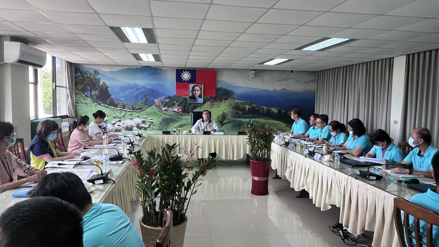 家主任假行政大樓會議室主持信義堂住民防疫感控檢討會