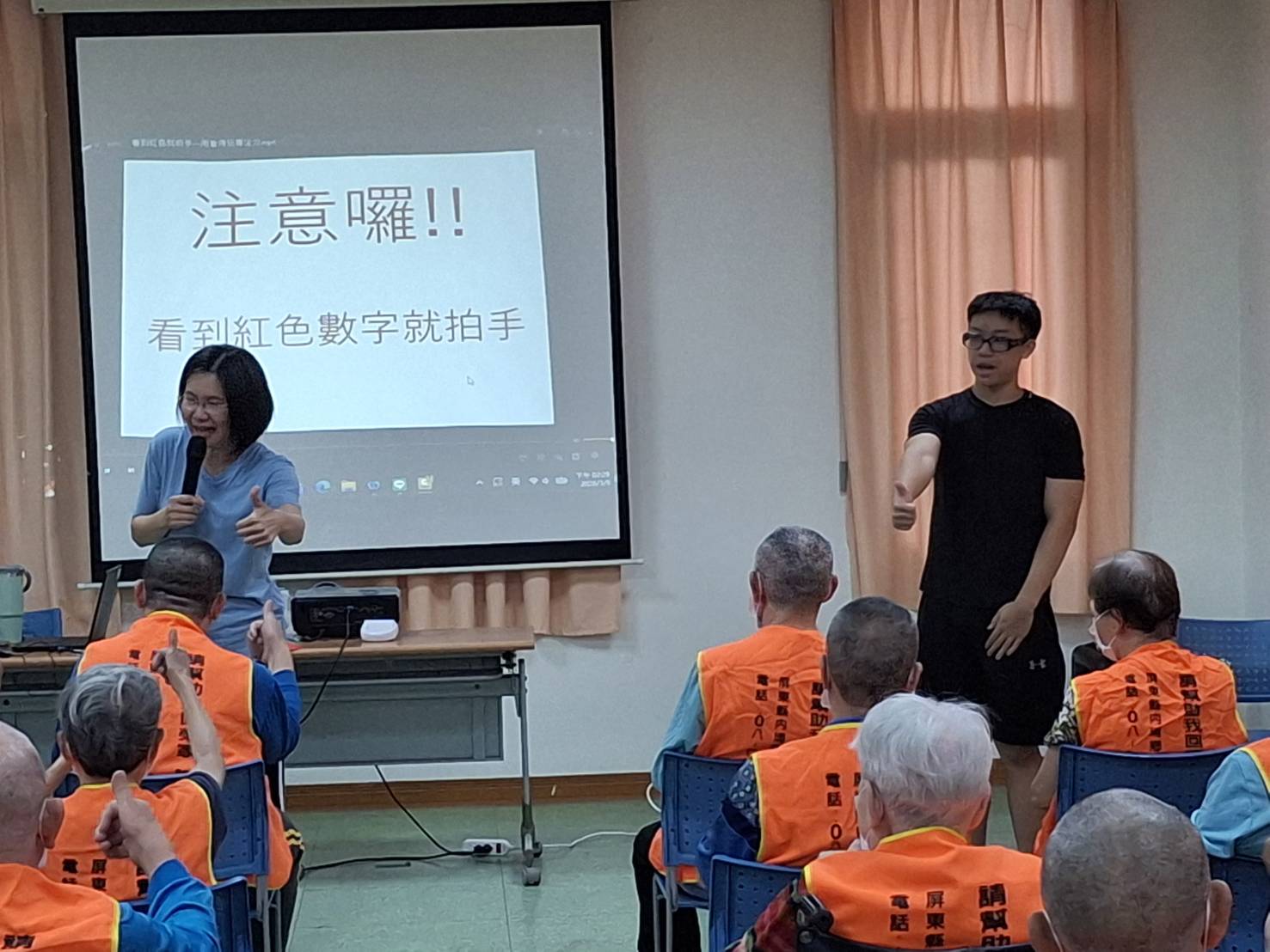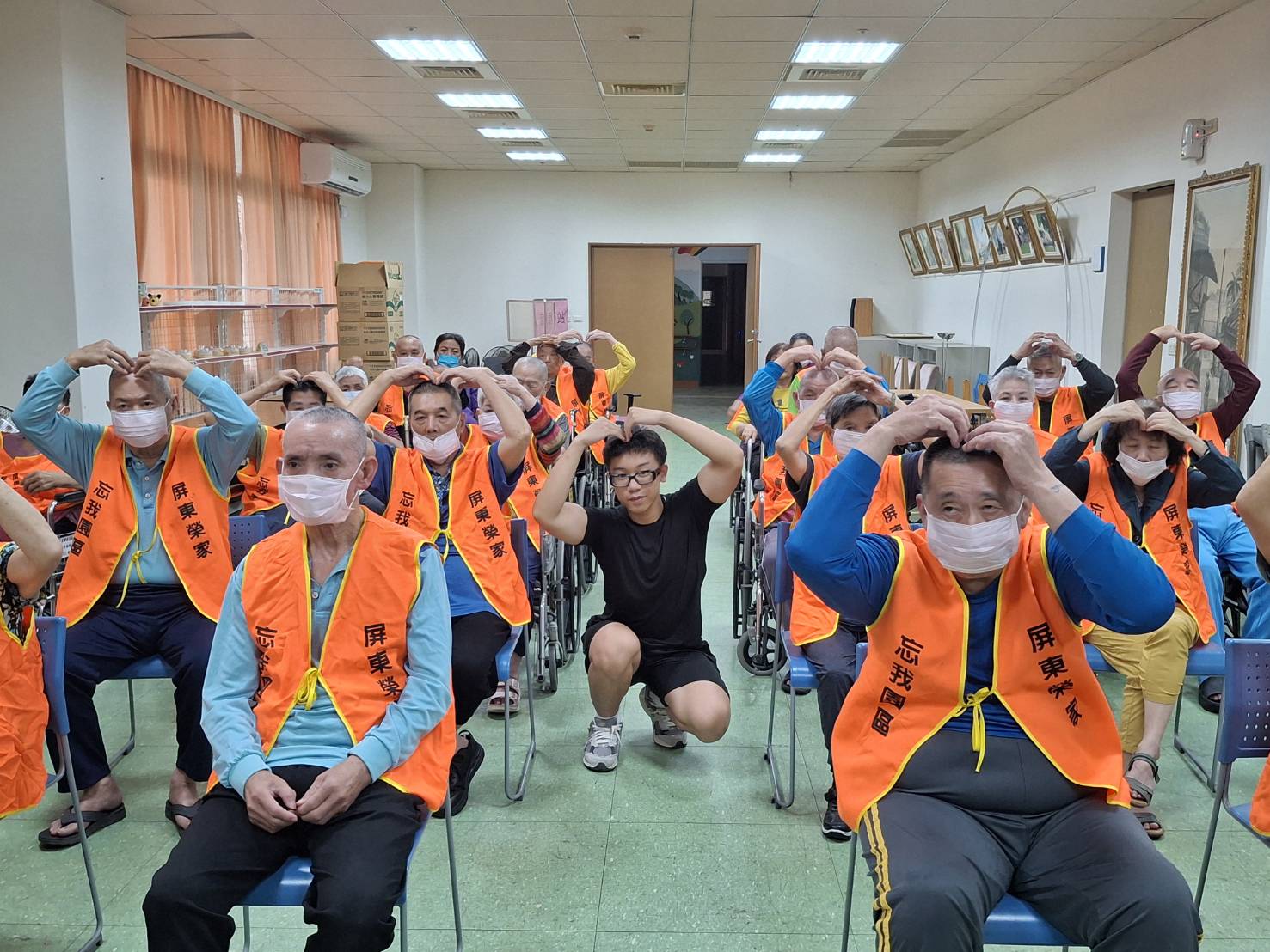 為提升住民健康及生活品質,並預防高齡跌倒意外的發生,屏東榮家近期舉辦非藥物治療活動;透過手眼協調及四肢運動等多元活動設計,鼓勵住民活動身體,在輕鬆愉快的氛圍中達到健康促進的效果。 活動過程中,由龍泉分院的吳雅婷講師以簡單有趣的方式帶領住民進行手眼協調訓練,藉由互動提升專注力及反應能力,同時搭配四肢運動,帶動手臂及腿部的肌群,協助住民維持肌力與身體靈活度,達到延緩退化的效果。 值得一提的是,本次活動增添幾分的青春氣息,來自鳳山高中的施辰諺同學在活動中擔任志工,陪伴著住民活絡筋骨,並與講師一同引導住民完成動作並給予鼓勵。施同學的熱情投入,不僅讓活動更加順利,也促進世代間的交流互動,更為現場增添許多溫馨及活力,展現青銀共融的美好畫面。 參與活動的住民們反應熱烈,不僅達到活動筋骨的效果,也促進彼此交流與情感連結。屏東榮家未來將持續推動多元健康促進活動,營造健康友善的生活環境,讓住民們能保持身心活力,安享健康快樂的晚年生活。