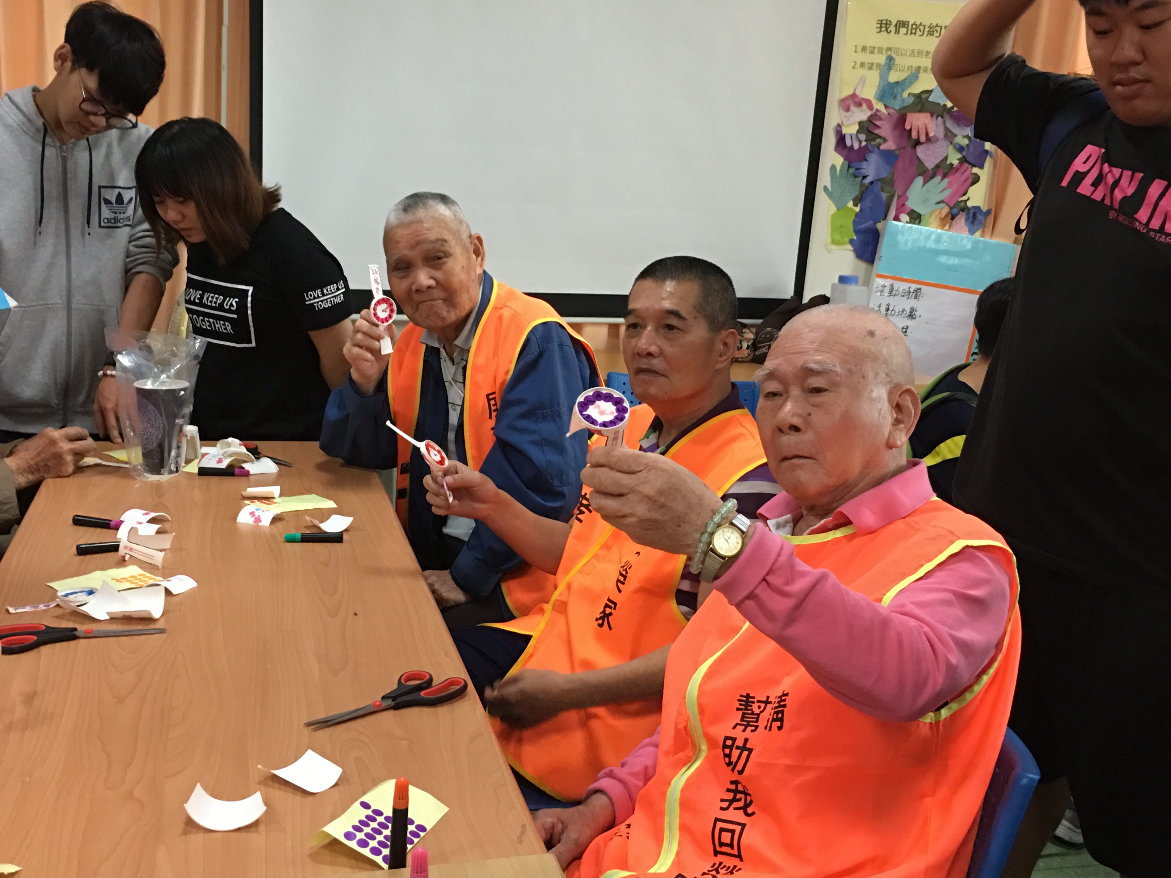 科大學子關懷心最得榮民歡心,美和科大生技系34位師生蒞家關懷,爺孫歡樂共聚一堂,含飴弄孫情濃厚。敲敲敲企鵝落海了一片歡笑。樂齡學苑共同製作妖怪手錶,阿伯正確說出時間,得到讚美掌聲