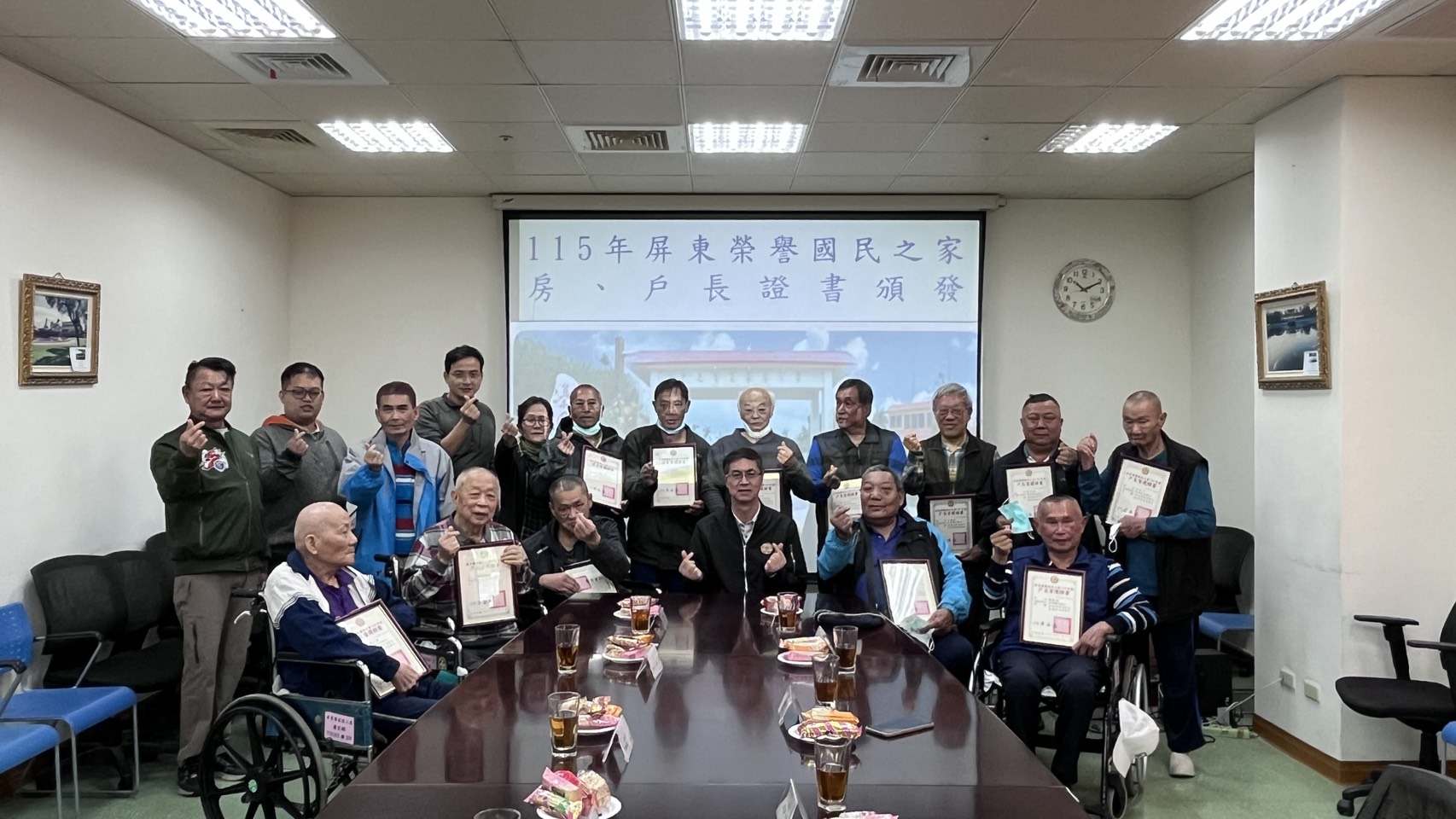 屏東榮譽國民之家於1月8日上午舉行「115年新任房、戶長頒證暨宣誓典禮」,由家主任李秦強親自主持,典禮中頒發當選證書給12位新任房、戶長。 榮家各堂隊於去(114)年底即熱烈展開房、戶長選舉作業。長輩們參與踴躍,投票率相當高,過程中展現了高度的民主素養。最終選出12位熱心公益、深獲鄰舍信賴的長輩擔任房長與戶長。這群由住民長輩「一票一票投出來」的房、戶長,將在未來一年內擔任榮家與住民間的重要溝通橋樑,並協助推動各項服務工作,展現「自己的家自己顧」的民主自治精神。 家主任李秦強在典禮中除恭賀當選人外,更特別肯定這群「高齡志工」熱心服務的優良傳統,強調榮家就是長輩的家,而房戶長就是這個大家庭裡的核心志工;榮家的社工與照護人員雖然專業,但房戶長與住民朝夕相處,能第一時間察覺長輩的需求與細微變化。透過房戶長制度的運作,不僅能落實「以服務代替管理」的理念,更能營造出溫馨、和諧且安全的頤養環境。 最後,全體新任房戶長與榮家工作同仁們合影留念,在莊嚴又不失溫馨的氣氛中,共同許下為榮家服務的承諾,期望新的一年屏東榮家能有更多正能量與新氣象。