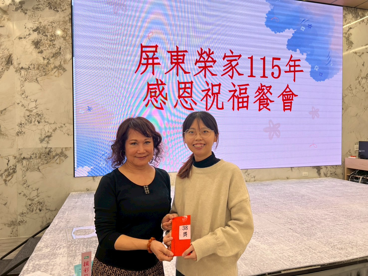 為感謝榮家職員工一年來的支持與配合,並提前迎接農曆新年的到來,屏東榮家於日前舉辦「115年感恩祝祈福餐會」,邀請全體職員工及住民代表、各界來賓齊聚一堂,共享佳餚、歡慶佳節,現場洋溢著溫馨熱鬧的團圓氣氛。 活動當天,榮家特別精心規劃豐盛的年終餐點,象徵圓滿與祝福,並安排精彩歌唱表演節目與摸彩活動,為與會人員帶來歡樂與笑聲。同仁們在親切的互動中話家常、迎新年,場面溫馨感人,充分展現榮家如同大家庭般的關懷與凝聚力。 家主任李秦強表示,感恩祈福餐會不僅是感謝工作同仁的一年來辛勞付出,更是凝聚情感、傳遞關懷的重要時刻。榮家始終秉持「以人為本、用心照顧」的服務理念,致力營造安全、溫暖且具尊嚴的工作環境,讓每位同仁都能安心工作。透過此次感恩祈福餐會,提前向與會人員誠摯的祝賀新年,期盼在新的一年持續攜手同行,營造更優質的照護服務與幸福生活。