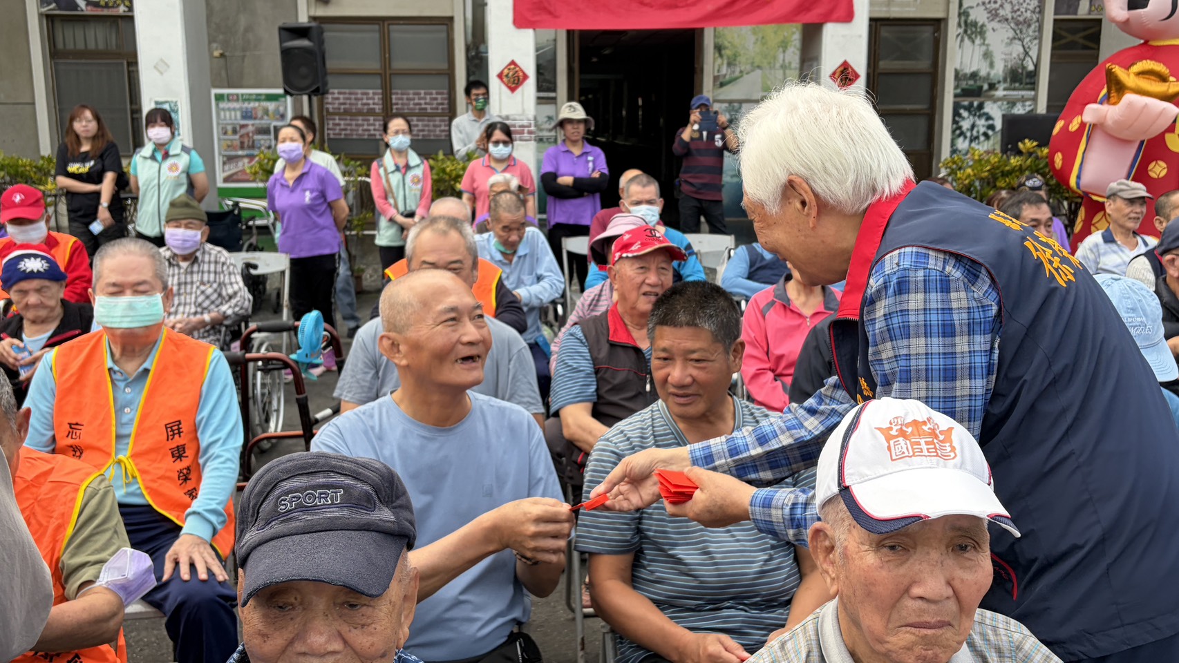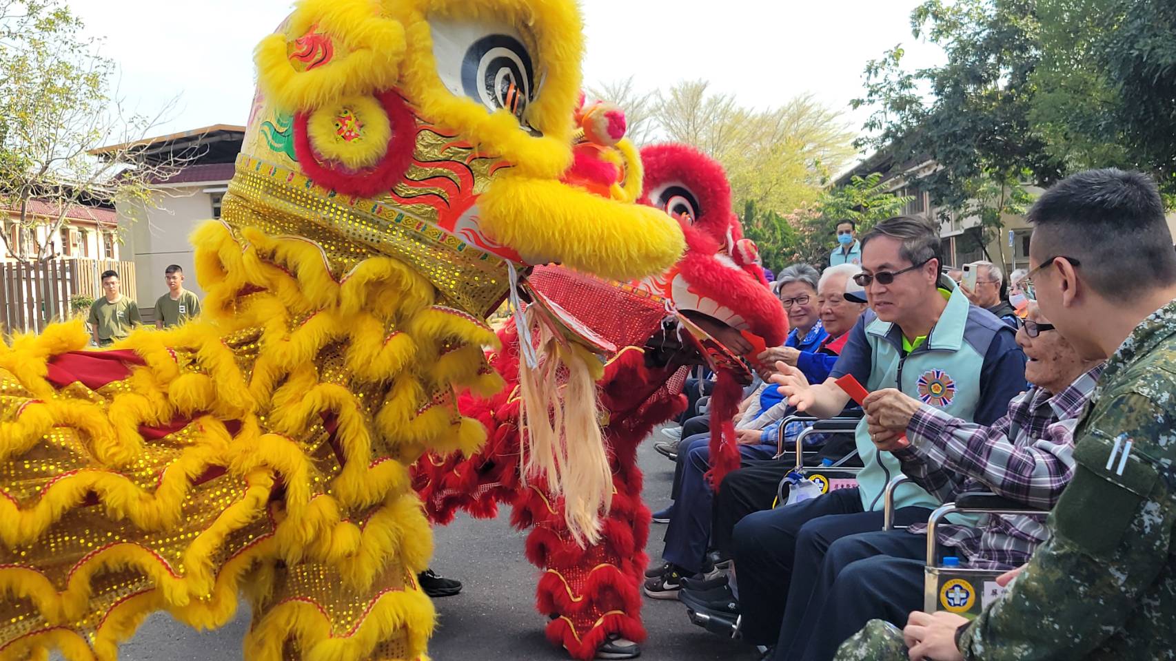 屏東榮家昨(25)日上午於家區中正堂前舉辦「新春團拜·健走賀新春」活動,在熱鬧喜慶的氣氛中,家主任李秦強偕榮家全體同仁及各界來賓向住民長輩共賀新歲、互道祝福。活動現場喜氣洋洋,洋溢濃濃年節氣氛,不僅展現對住民長輩的關懷與敬意,也凝聚榮家團結一心的力量。 活動中由家主任與貴賓們逐一向長輩發放象徵吉祥與祝福的紅包,並親切問候每位長輩,場面溫馨感人。為增添互動趣味,長輩 及來賓們「向左轉、向右轉」互相拜年,大家相互拱手、微笑鞠躬,彼此道賀新年,讓新春的喜悅在彼此間傳遞流動。 活動高潮隨著陸軍第三三三旅的戰鼓隊及醒獅團熱鬧登場,鑼鼓齊鳴、節奏鏗鏘,祥獅隨著鼓聲翻騰跳躍,象徵驅邪納福、步步高升。醒獅向住民長輩拜年獻瑞,逗趣可愛的動作引來陣陣笑聲與掌聲,寓意福氣臨門、吉星高照,為整場活動增添濃厚節慶色彩。 隨後還有「一馬當先,幸福健走」活動,鼓勵長輩走出戶外、舒展筋骨,在安全無虞的規劃下,沿著家區路線健走。大家精神抖擻、步伐穩健,在春日暖陽下享受運動的樂趣,也象徵新的一年活力滿滿、勇往直前。透過健走活動不僅促進身體健康,也增進彼此交流互動,讓新春團拜更具意義。 屏東榮家李秦強家主任表示,新春團拜不僅是一項傳統儀式,更象徵榮家大家庭團結互助、彼此扶持的精神。感謝過去一年住民長輩與家屬的信任與支持,也感謝工作同仁默默耕耘、用心守護,未來榮家會持續提升照顧品質,打造更溫馨、安全與有尊嚴的頤養環境。