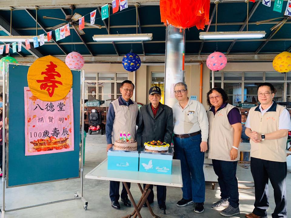 百歲慶生趴^_^安養照護花絮 胡伯過百歲生日,兒子遠從台北南下,邀請家主任與長輩共同祝壽,胡伯分送最近活動照片讓收到的長輩非常高興,胡伯、堂長、社工,護理師彼此的臉都是畫布,現場笑聲不斷,家屬笑的最大聲,這才是家的感覺。祝胡伯生日快樂呷百二。