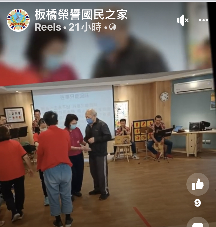 張志範前處長為退役將軍,退休後學習薩克斯風,致力於將歡樂帶給長輩們。今日特別邀請張前處長來到憶樂日照中心,張前處長為給憶樂長輩們盛大的音樂饗宴,特別帶領老兵樂團來到中心。一首首經典老歌「甜蜜蜜」、「往事只能回味」、「小城故事」等喚起長輩過往的記憶,不由自主地一同拍手哼唱。聽著熟悉的歌曲,長輩都忍不住舞動身體,在美妙的音樂及照服員的帶動下,長輩忍不住起身跳舞,個個都深藏不露。