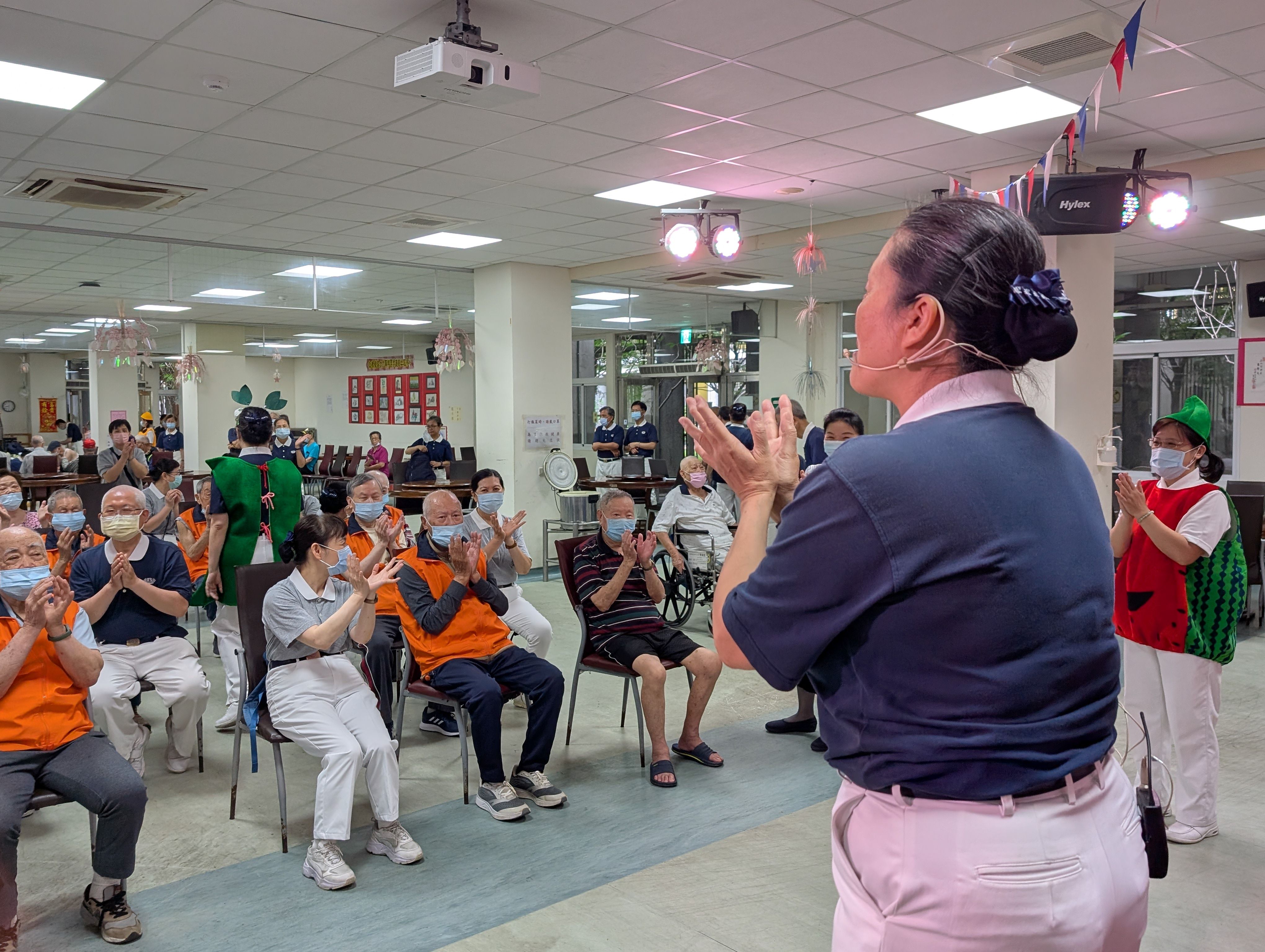 一早,長輩們陸陸續續進到活動場地,月華師姐就用充滿活力的聲音與能量帶動長輩們一起動滋動滋YOUNG起來,活潑風趣的帶動,讓長輩們充滿活力的跟著動一動;水噹噹家族三位美女,亮眼的舞衣、動感的熱舞帶來「戰馬、天上的明月光」等歌曲,長輩們都跟著節奏大力拍手;ONE AIR樂團堅持著年輕的夢想,持續練團並為長輩公益服務,讓長輩在年輕氣息的表演中也感受到青春,團員中還表演有趣的魔術表演,帶給長輩歡樂;師姐們的手語表演「娃娃的故事、今宵多珍重、千手來牽手」,優雅的手語帶動,讓長輩跟著一起學習,全場都動了起來,最後並在大家提早互道端午節快樂中圓滿結束!