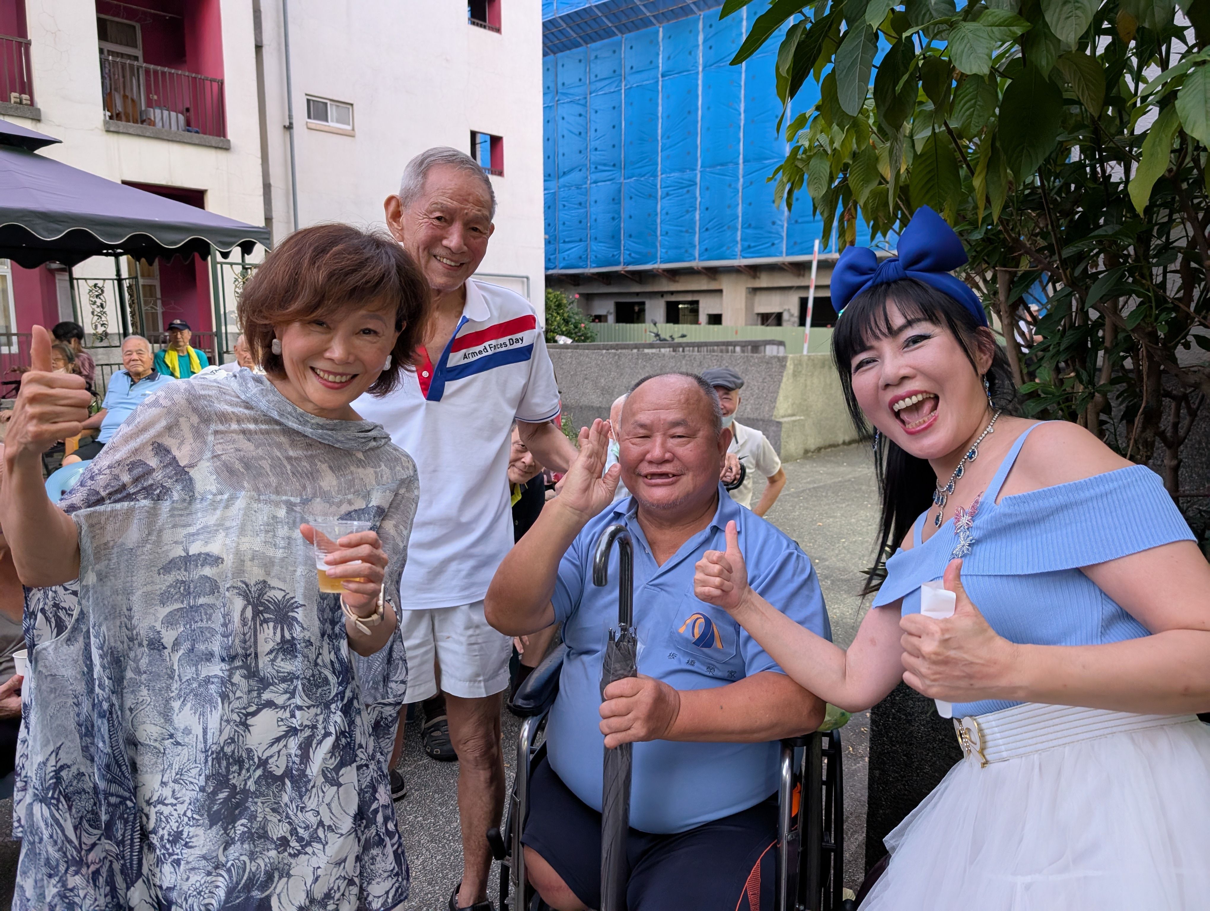 中秋佳節是闔家團圓、共敘天倫的日子,板橋榮家特別於節日當天舉辦別具特色的烤乳豬賞月活動,搭配冰涼生啤酒與精彩歌唱表演,讓榮民長輩們在月光下度過一個難忘的佳節。 活動現場熱鬧非凡,由長輩分成3組比賽烤乳豬的技術,香氣四溢的烤肉香,不斷立刻吸引長輩們在旁駐足圍觀,長輩們更加碼自行購置食材、水果、飲料等,大家邊烤邊聊,不僅增進彼此情感,更為中秋增添趣味。 除了美食饗宴,榮家也邀請樺逸歌唱天地的兆逸與宜樺夫妻帶來精采表演,深情歌聲喚起長輩們的青春記憶,兩人更號召好朋友又福傘業有限公司贊助20把枴杖傘作為摸彩品,讓長輩更投入活動,長輩們也爭相上台唱歌,歌聲此起彼落,讓中秋月夜更溫馨歡樂。 板橋榮家主任陳桂美表示,中秋節不僅是一個節日,更是凝聚感情與分享幸福的時刻,感謝萬事達開發行銷公司李奇璉總經理及張國輝總監也來到現場關懷長輩,還有長期關心榮家的好朋友與表演團隊的熱情參與,讓榮家長輩們在香噴噴的烤乳豬、美妙歌聲與皎潔月光下,感受滿滿的陪伴與關懷,共度團聚,一起串起屬於板橋榮家的中秋回憶。 相關照片