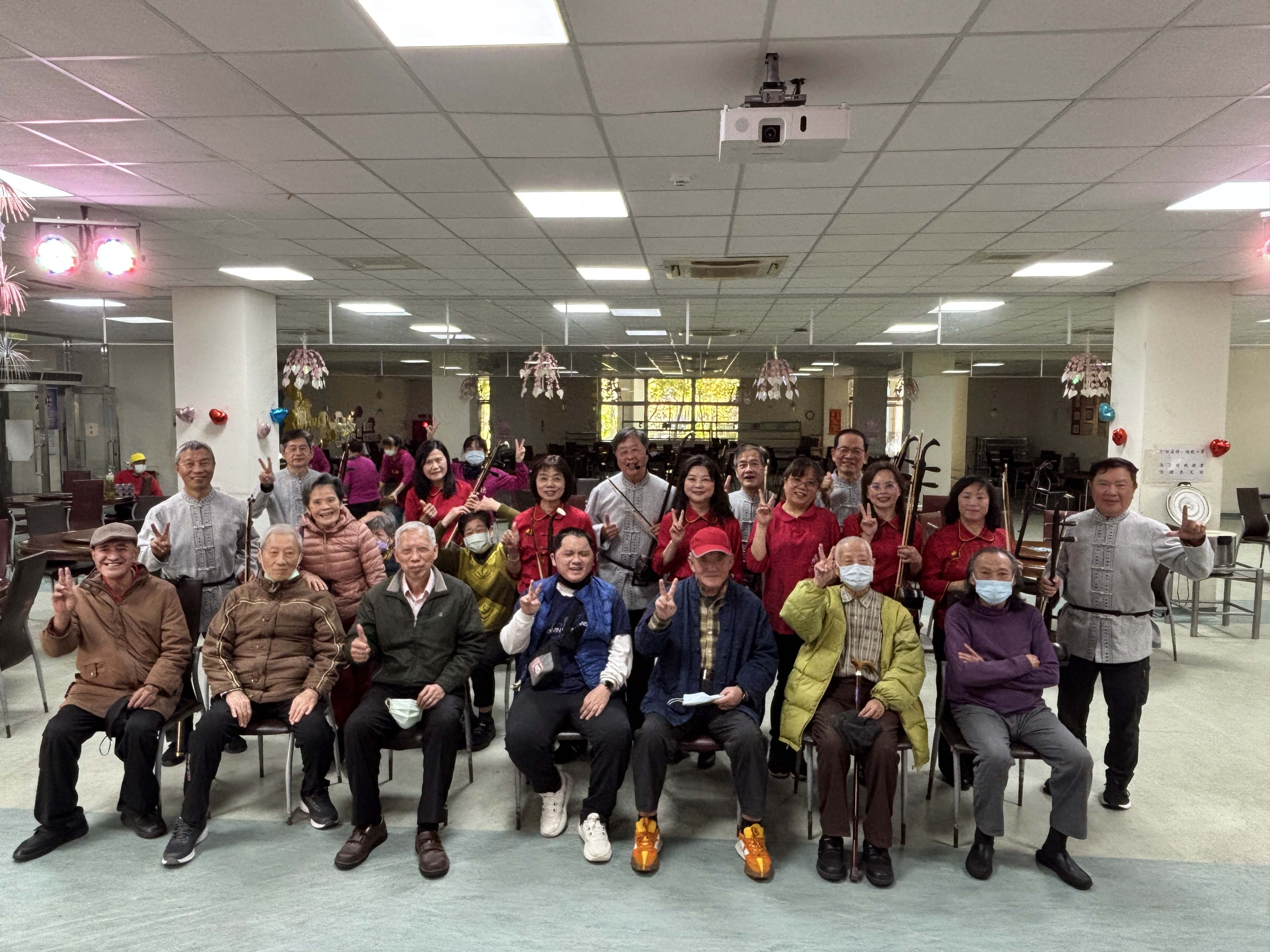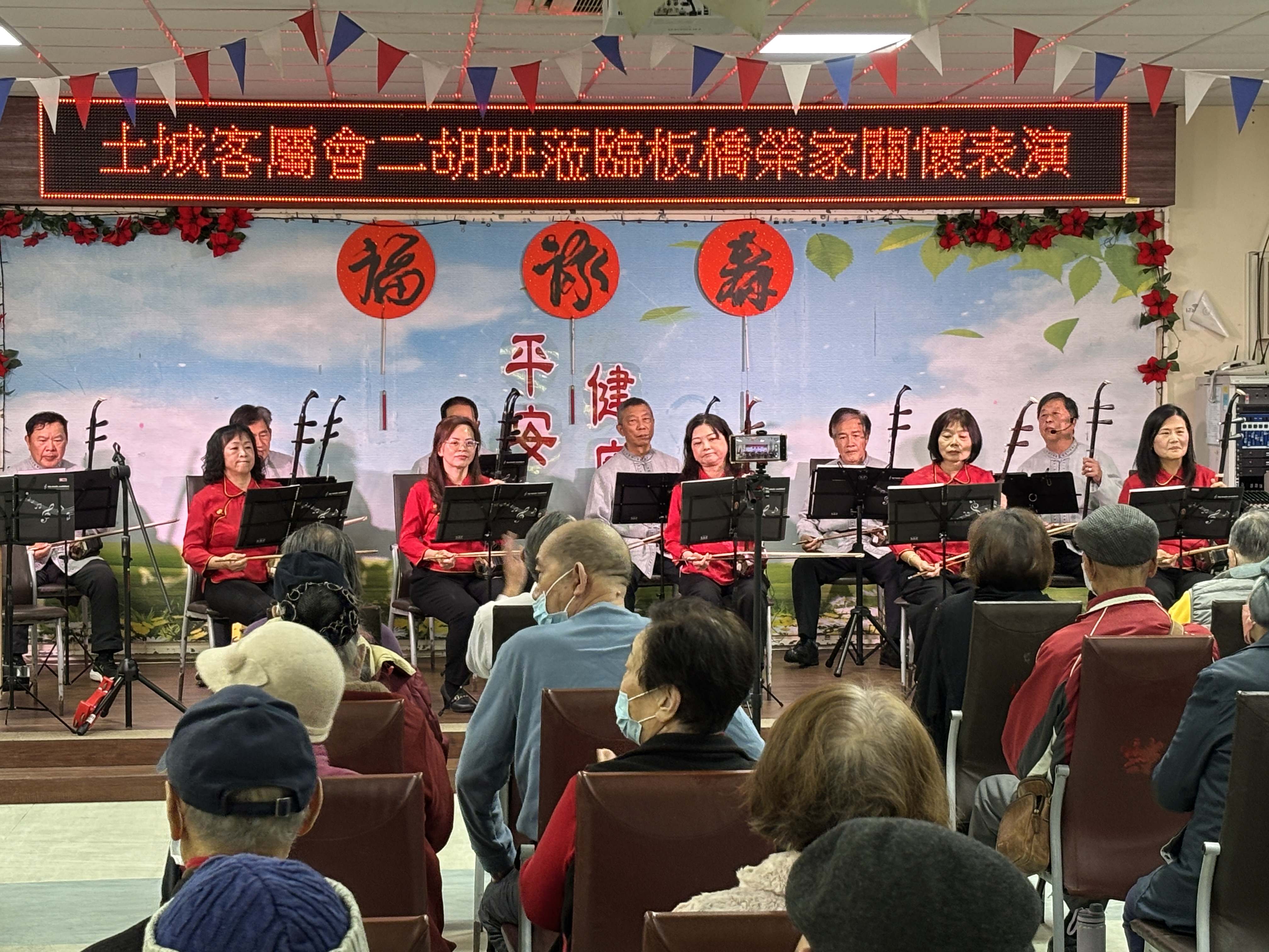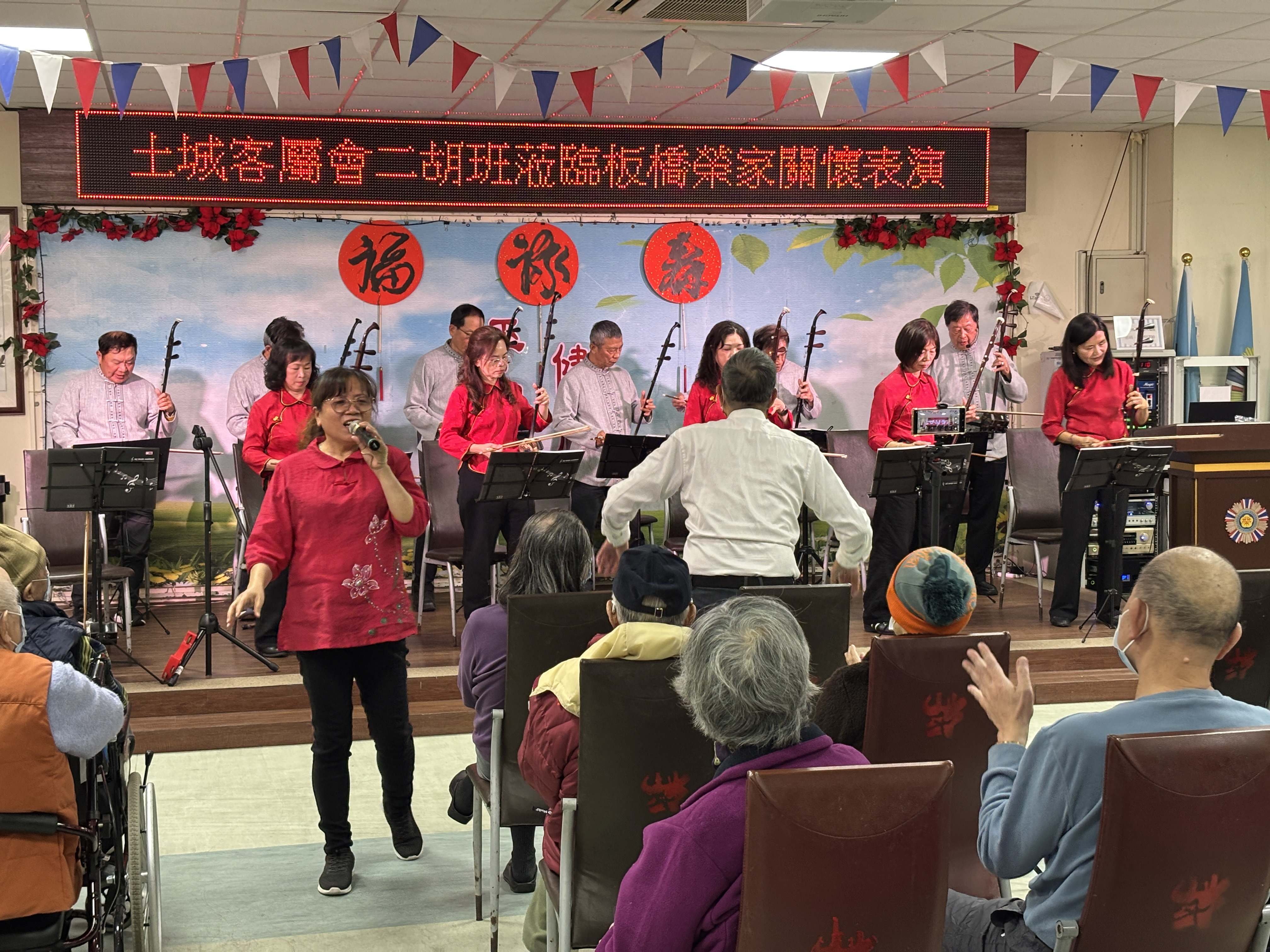 冬日的午後,板橋榮家流淌著絲絲入扣的胡琴聲,土城客屬會二胡班在鄭班長的帶領下,一行12位團員於今日親臨板橋榮家,展開一場音樂饗宴,這群熱心的志工老師們透過指尖與琴弓的交織,為榮家的長輩們帶來了一場充滿懷舊情懷與新春祝福的視聽盛宴。