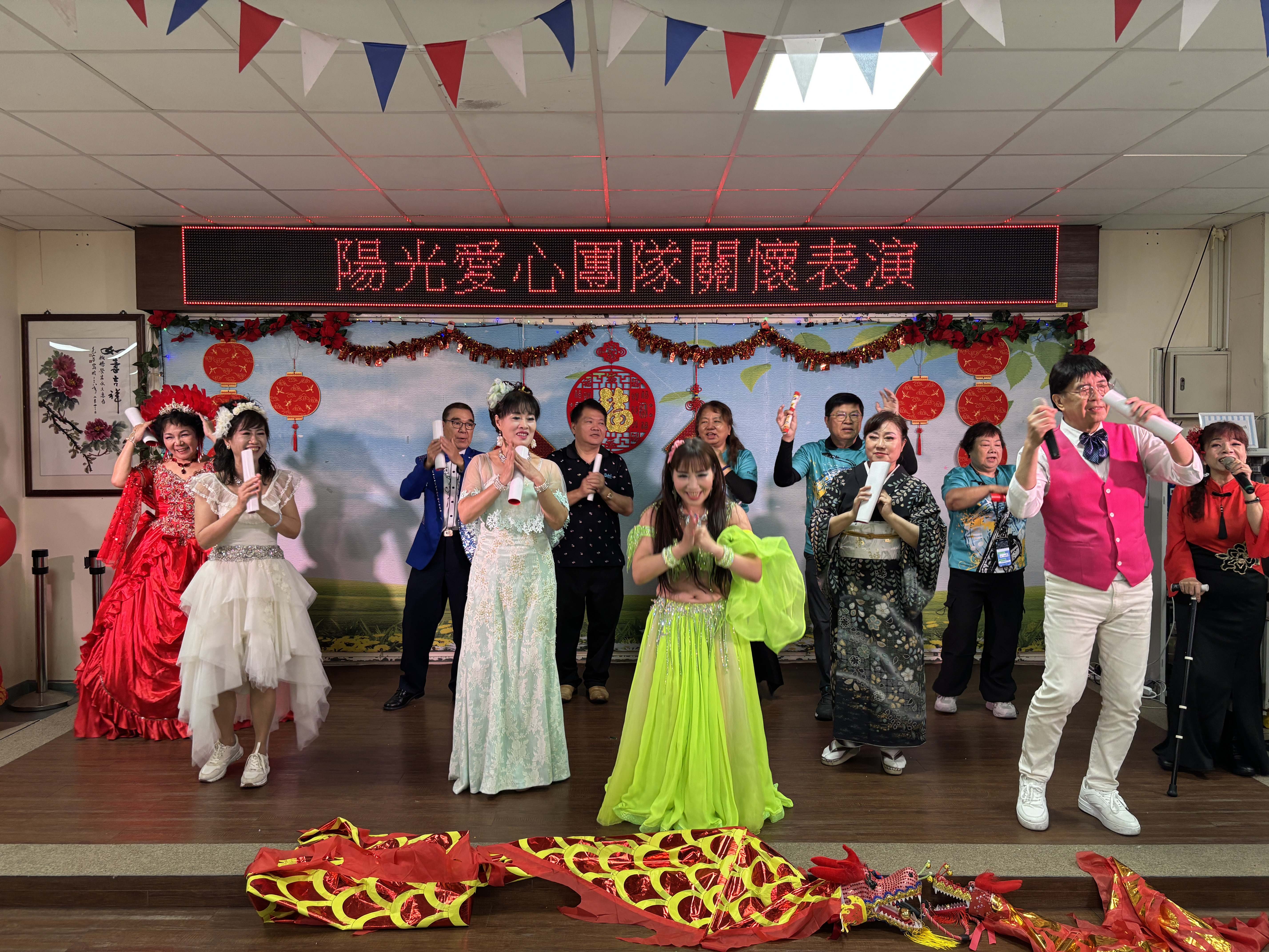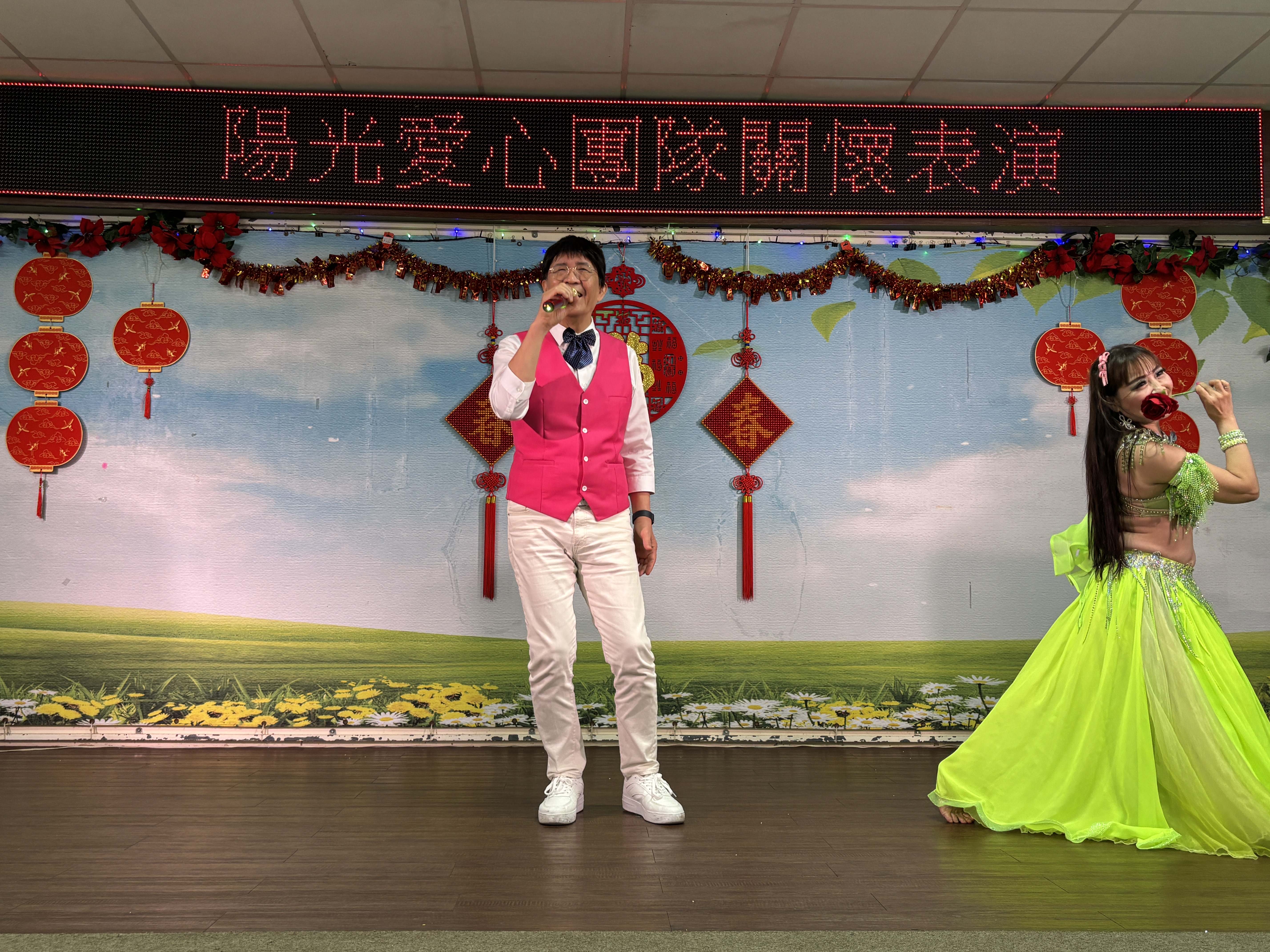 新春開工傳愛不間斷!陽光愛心團隊於農曆過年後首場公益表演特別選在板橋榮家盛大演出,由學聰團長領軍,集結歌唱、日本舞、魔術及肚皮舞等各界表演好手,透過多元豐富的藝文表演,將滿滿的新春祝福與溫暖親自傳遞給現場每一位長輩,共同慶祝馬年新春。